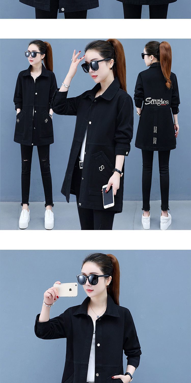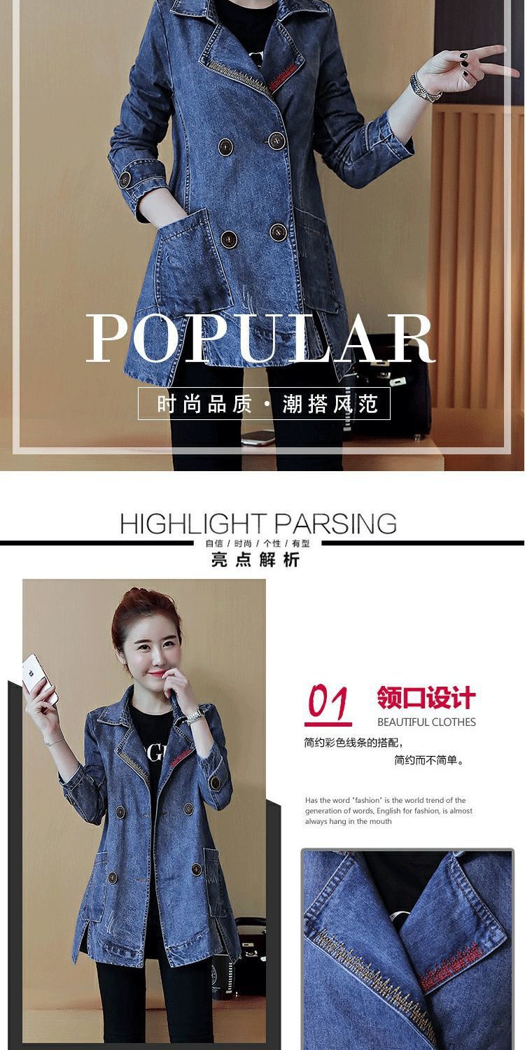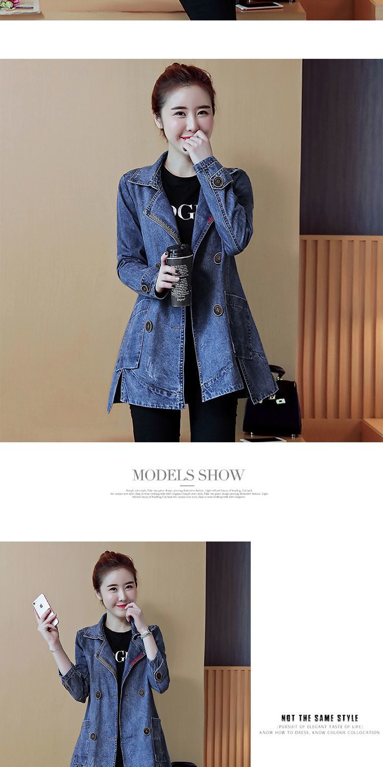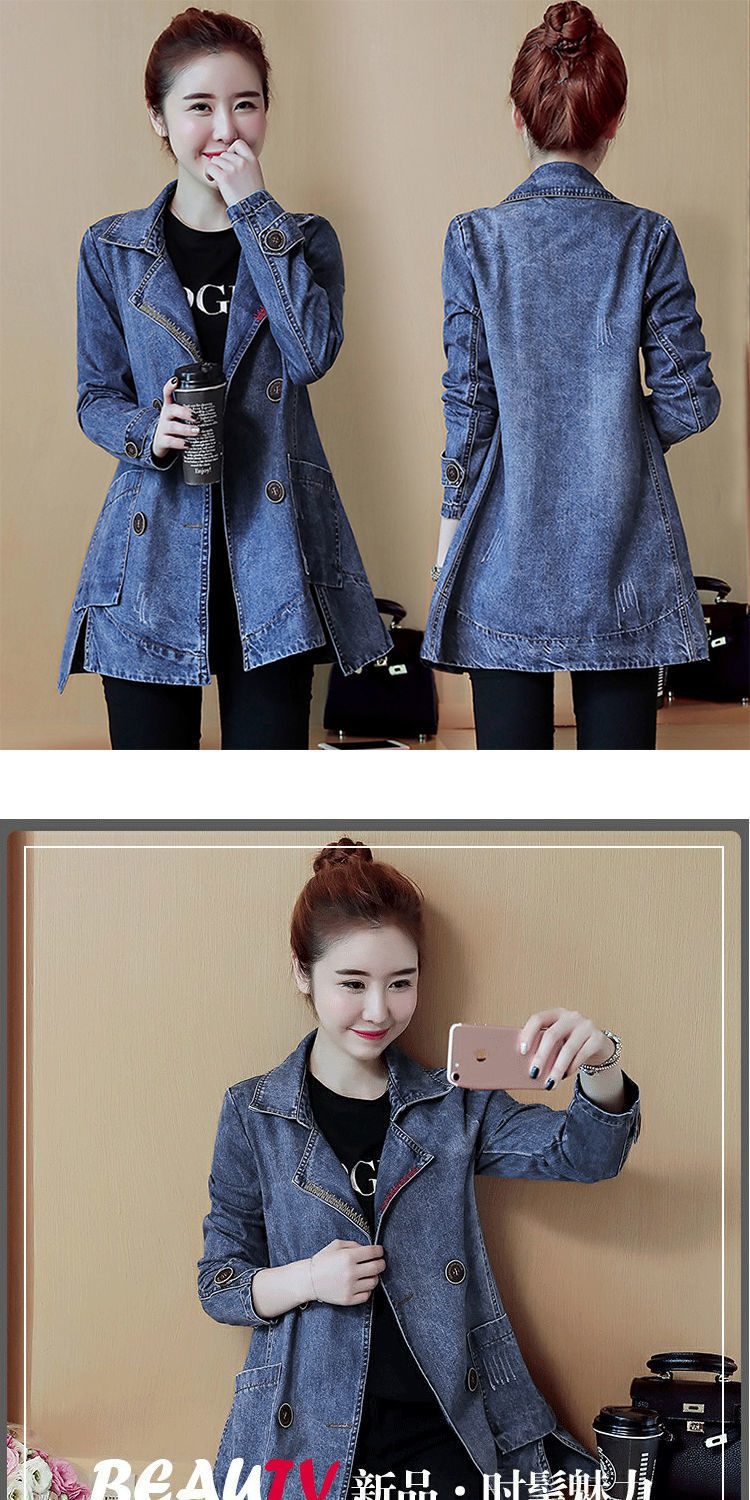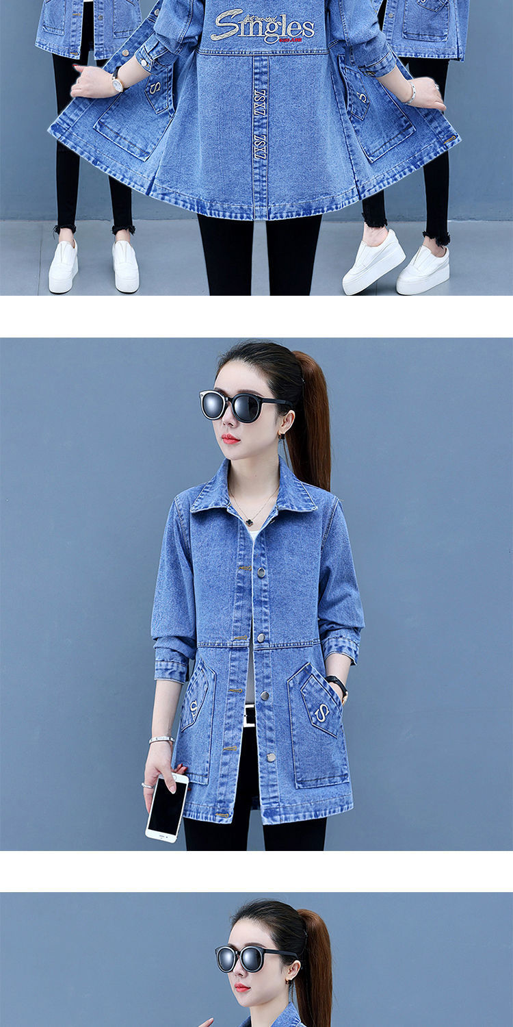 봄과 가을 데님 코트 여성의 2024 새로운 패션 간단한 데님 코트 여성의 중간 길이 원피스 칼라 재킷스토어 가기