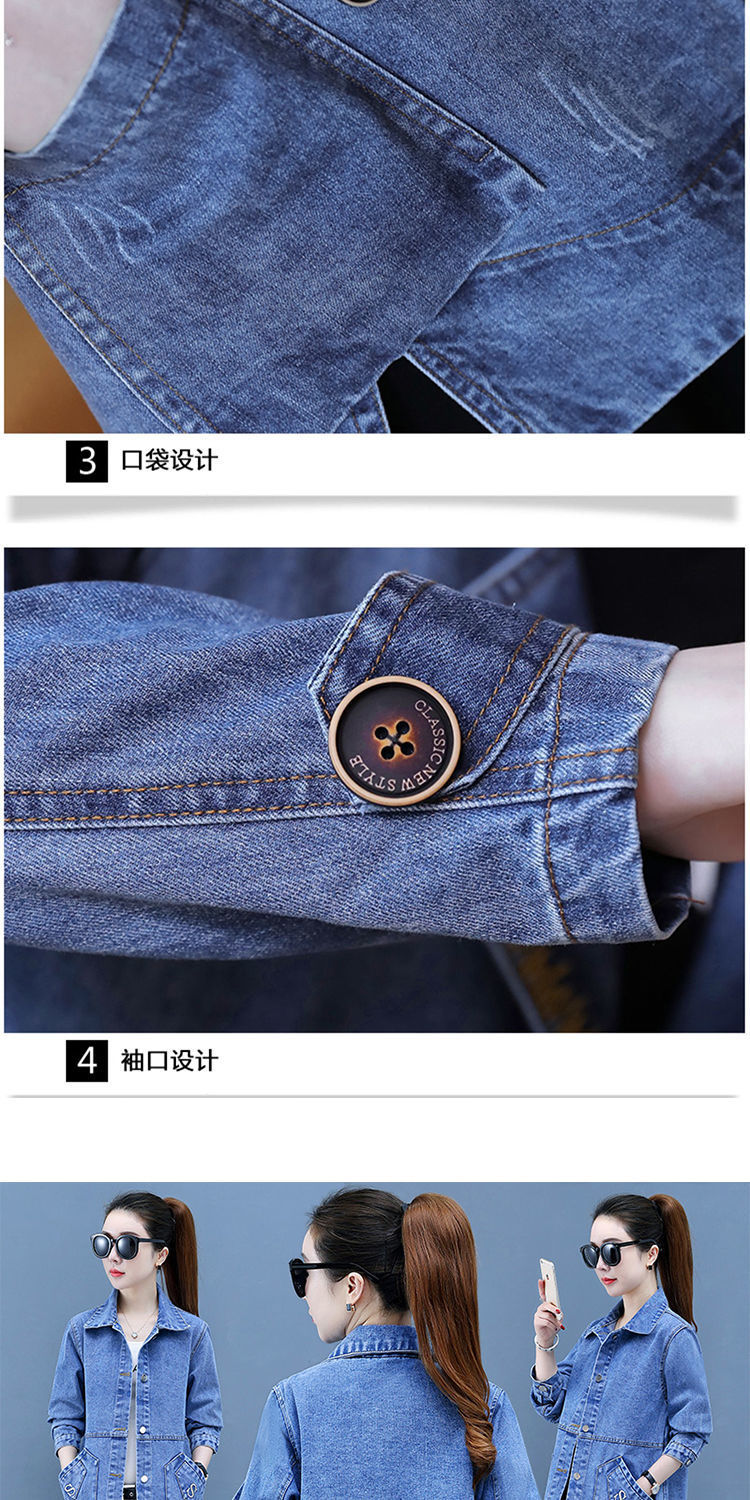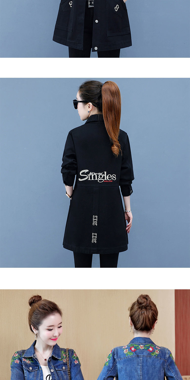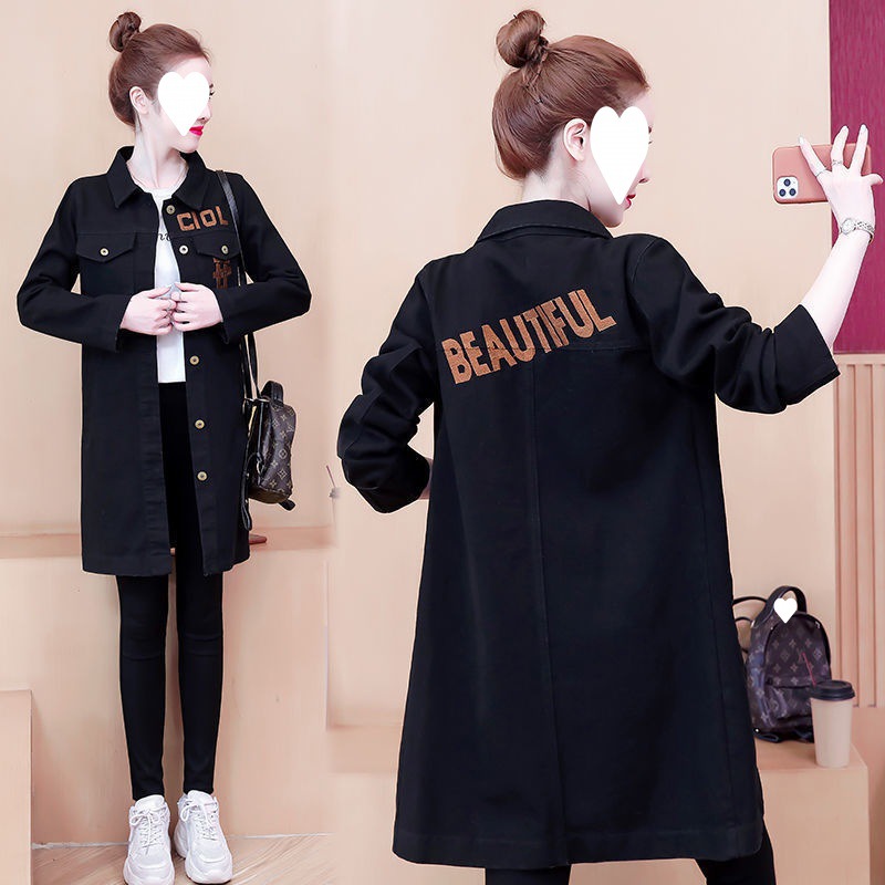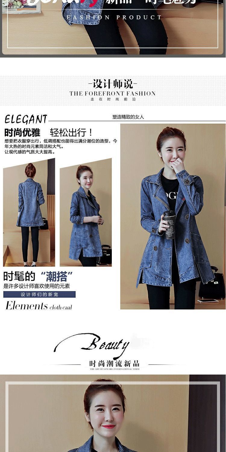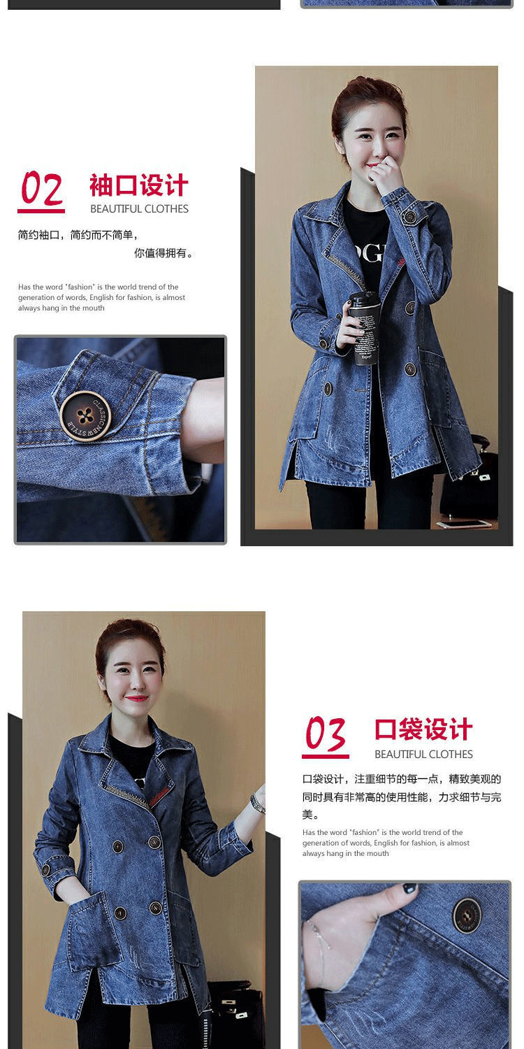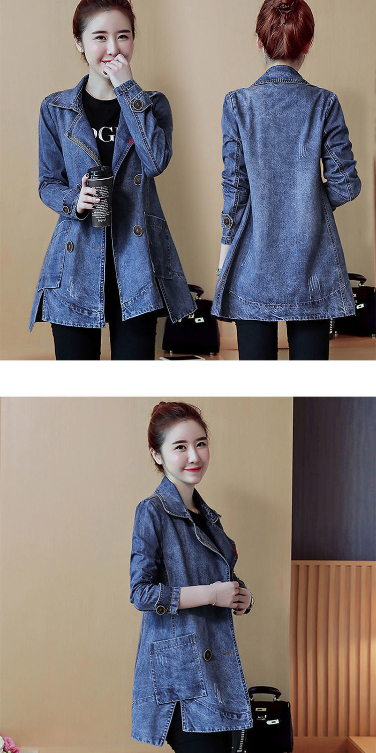 봄과 가을 데님 코트 여성의 2024 새로운 패션 간단한 데님 코트 여성의 중간 길이 원피스 칼라 재킷스토어 가기