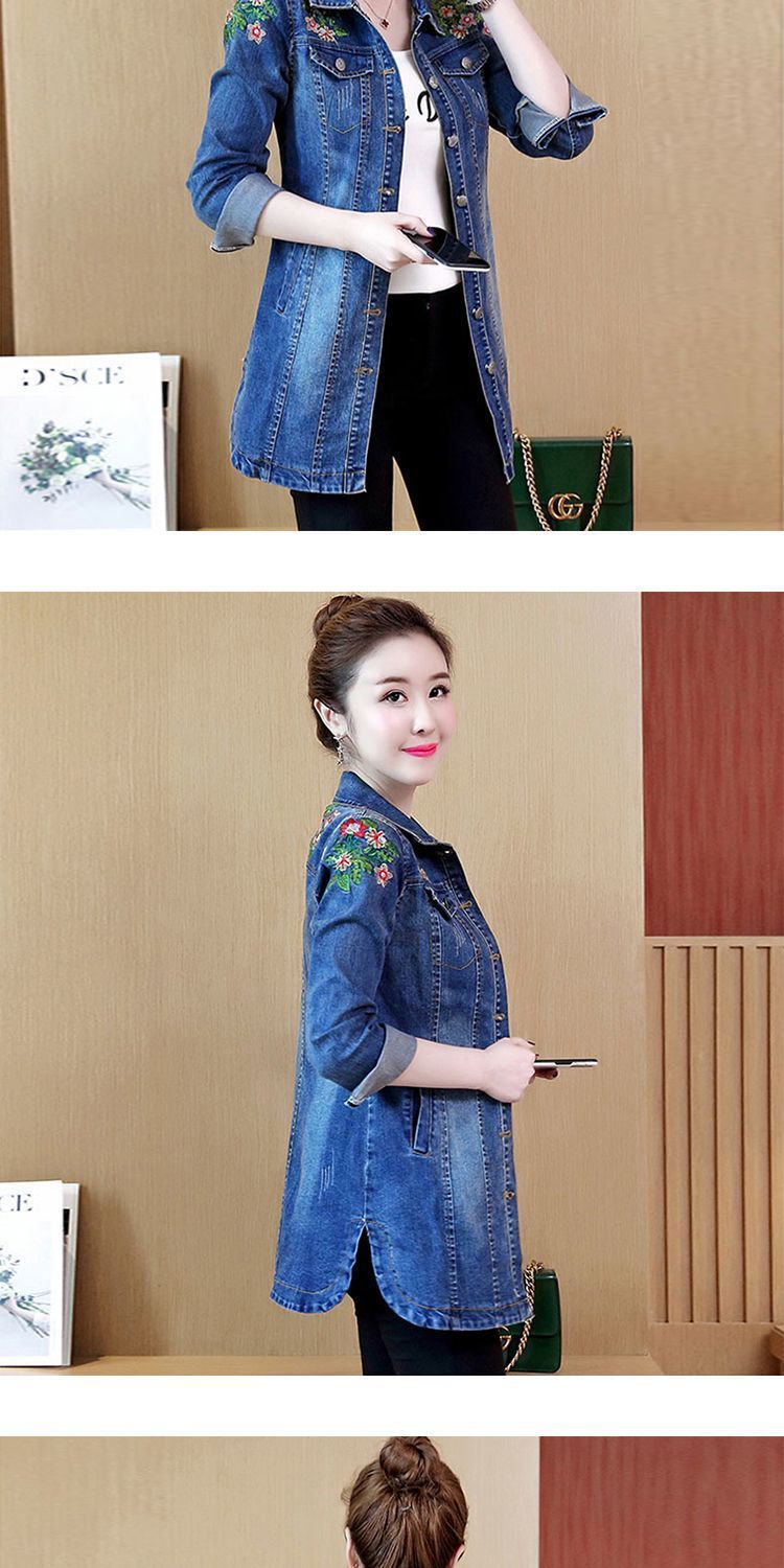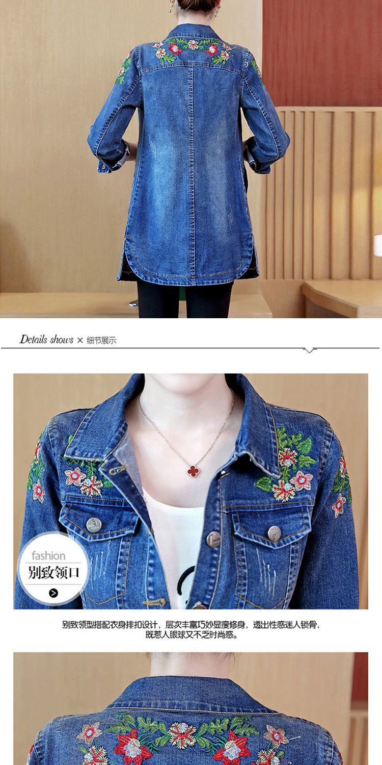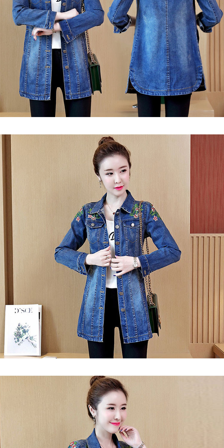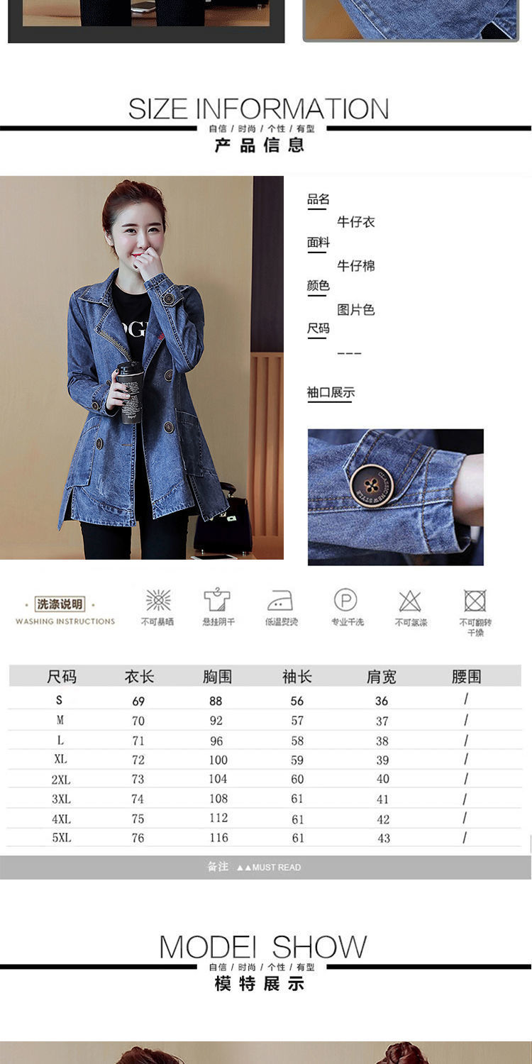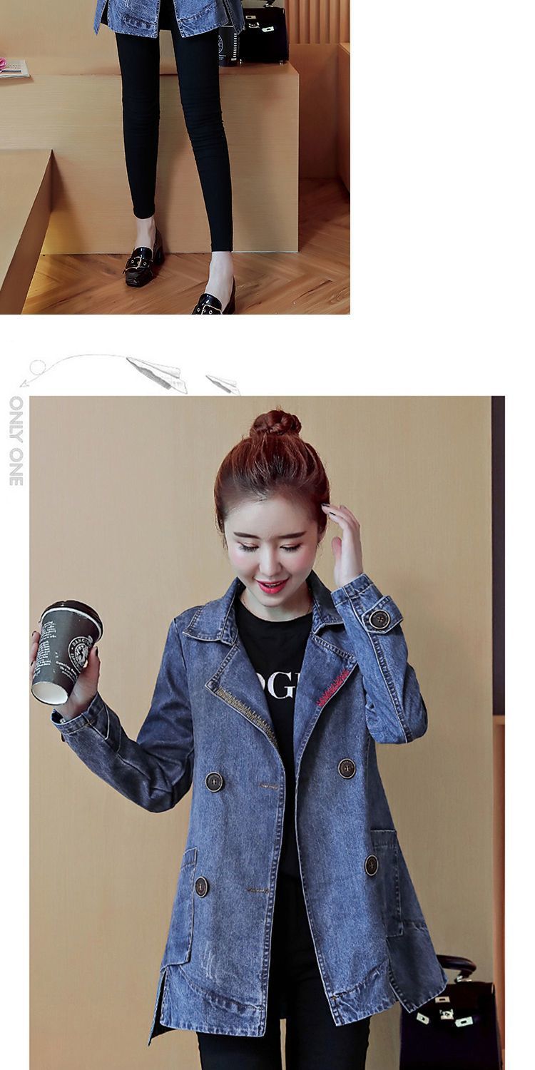 봄과 가을 데님 코트 여성의 2024 새로운 패션 간단한 데님 코트 여성의 중간 길이 원피스 칼라 재킷스토어 가기