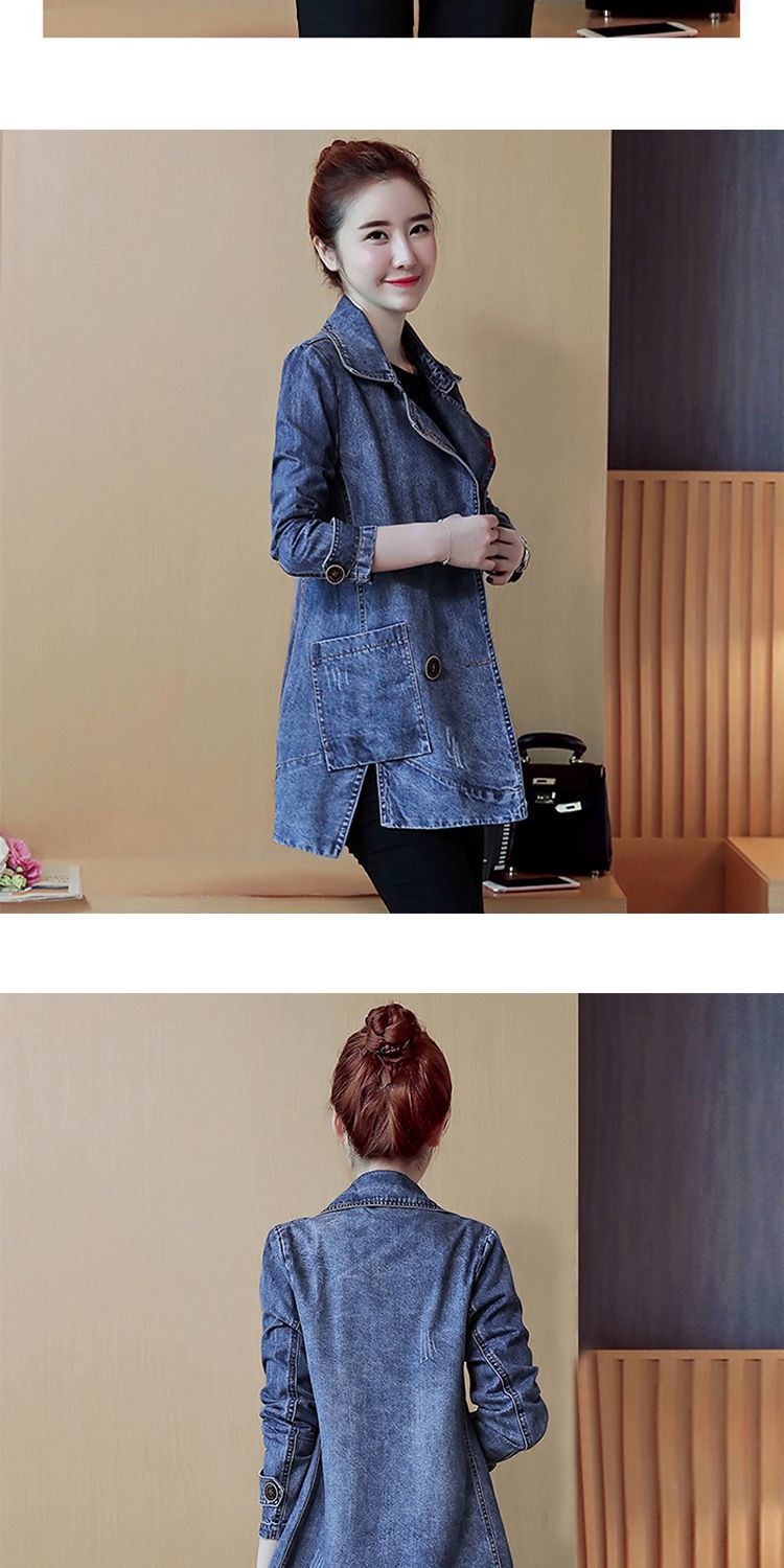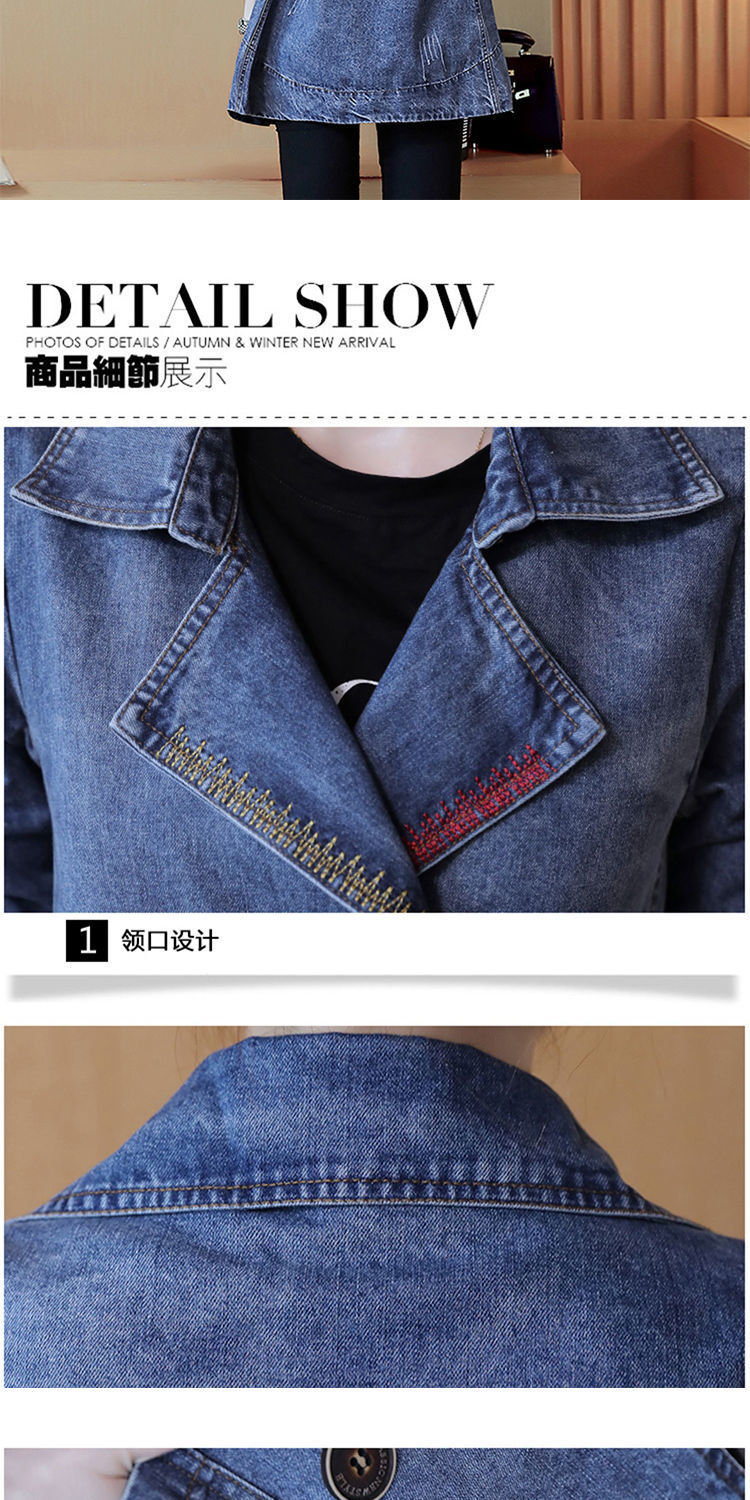 봄과 가을 데님 코트 여성의 2024 새로운 패션 간단한 데님 코트 여성의 중간 길이 원피스 칼라 재킷