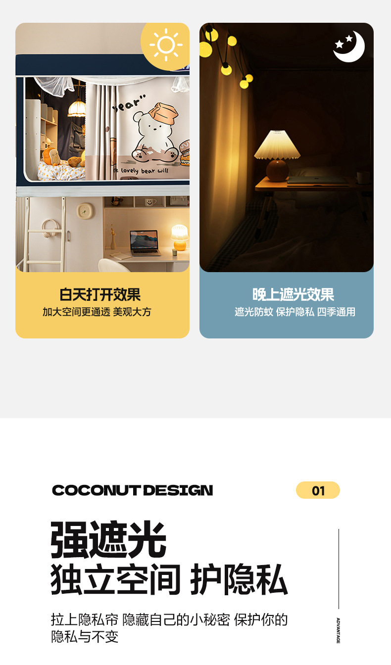 음영 침대 커튼 모기장 통합 대학생 기숙사 단일 포함 커튼 상단 및 하단 벙크 유니버설스토어 가기