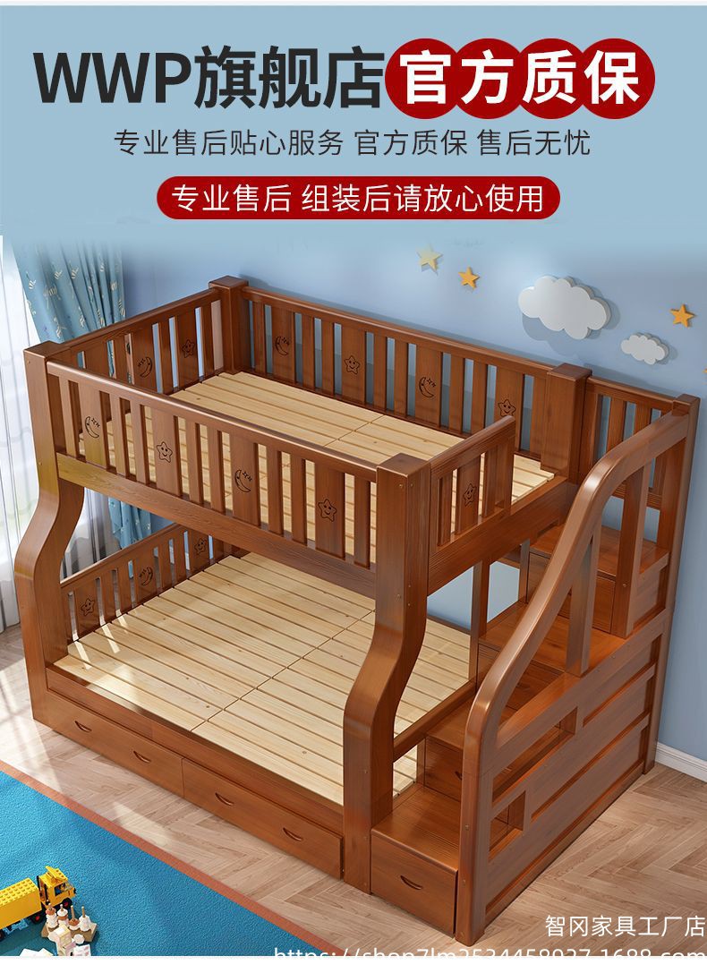 모든 단단한 나무 이층 침대 2 층 높고 낮은 침대 어린이 이층 침대 2 층 작은 아파트 침대