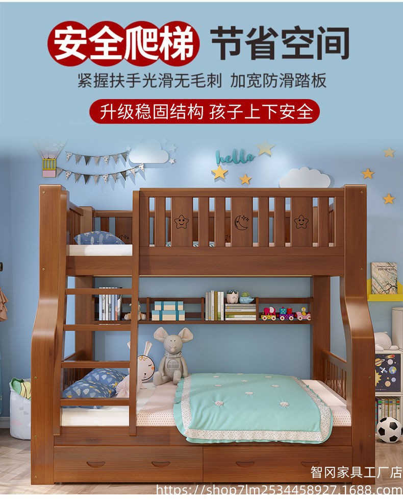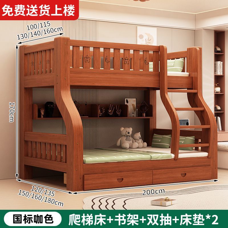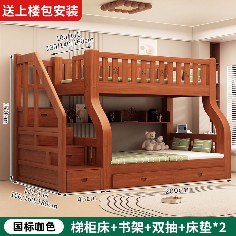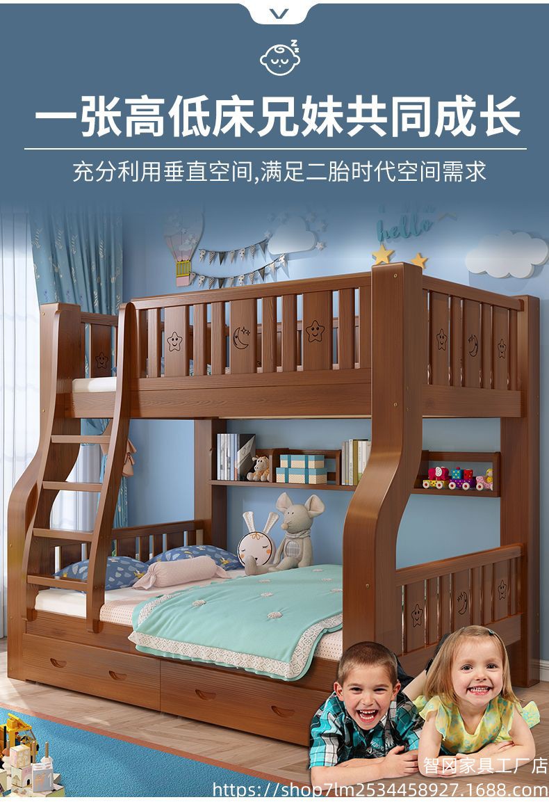 모든 단단한 나무 이층 침대 2 층 높고 낮은 침대 어린이 이층 침대 2 층 작은 아파트 침대스토어 가기