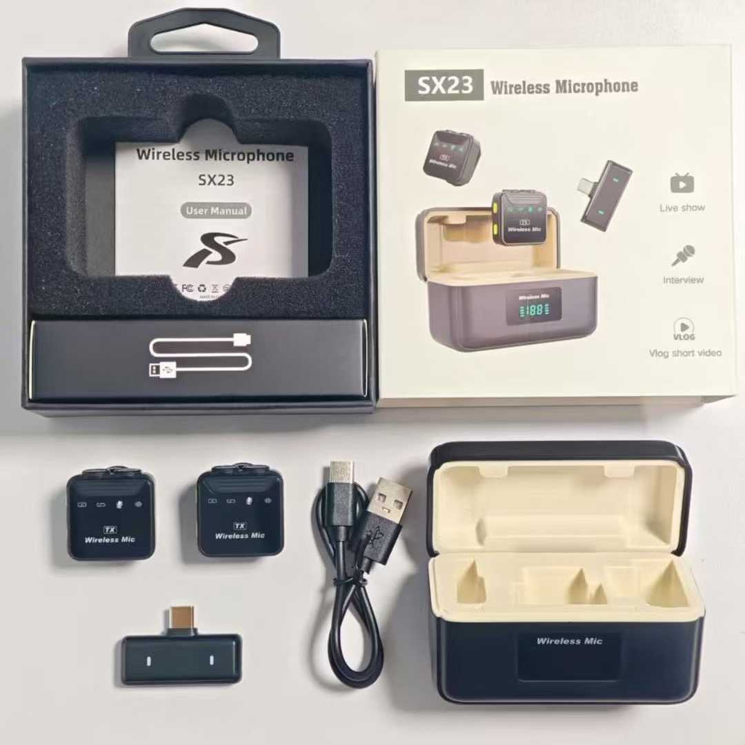 새로운 SX23 더블 마이크 무선 칼라 클립 마이크 충전 구획 휴대 전화 라이브 라디오 마이크 소음 감소 미니스토어 가기