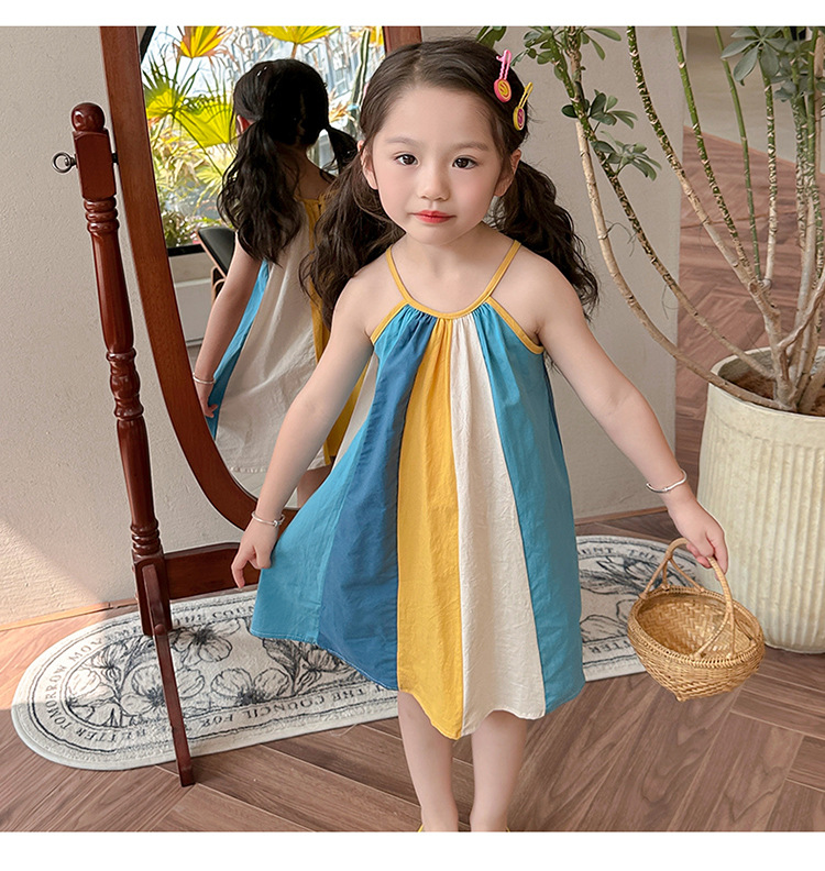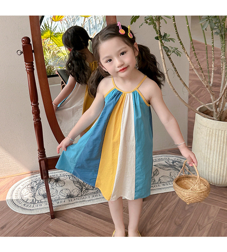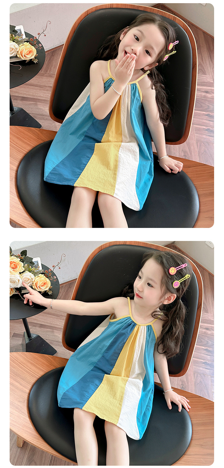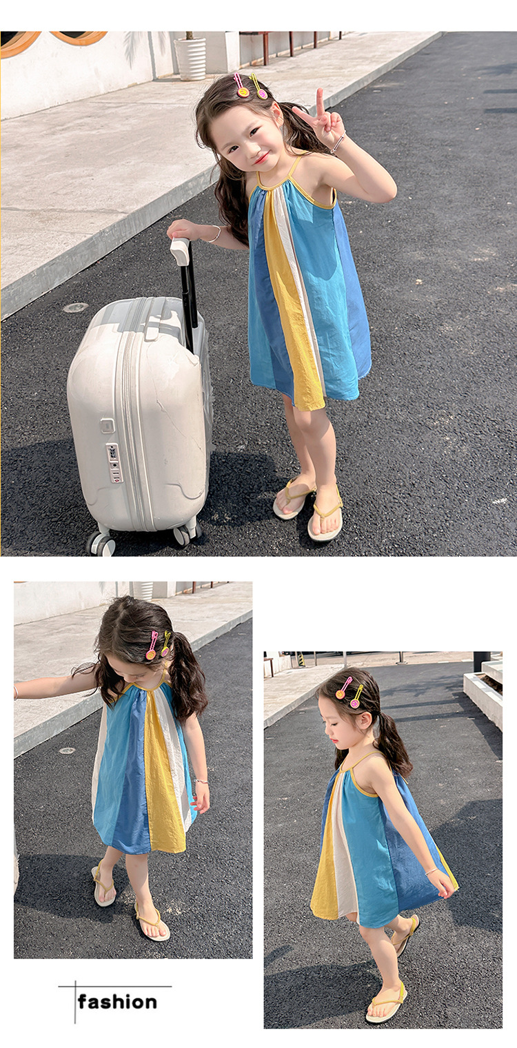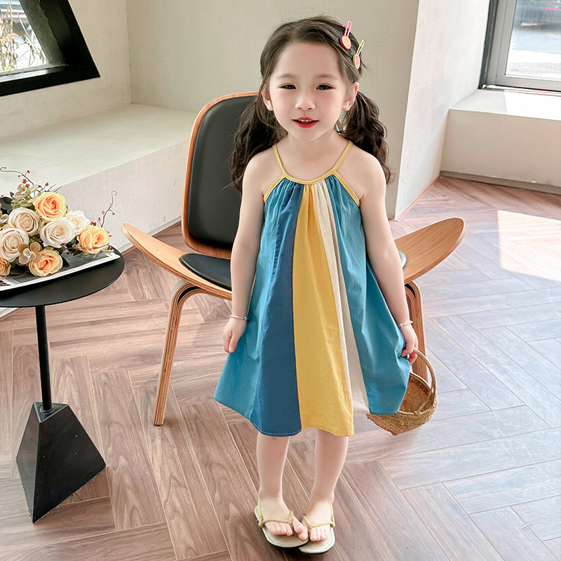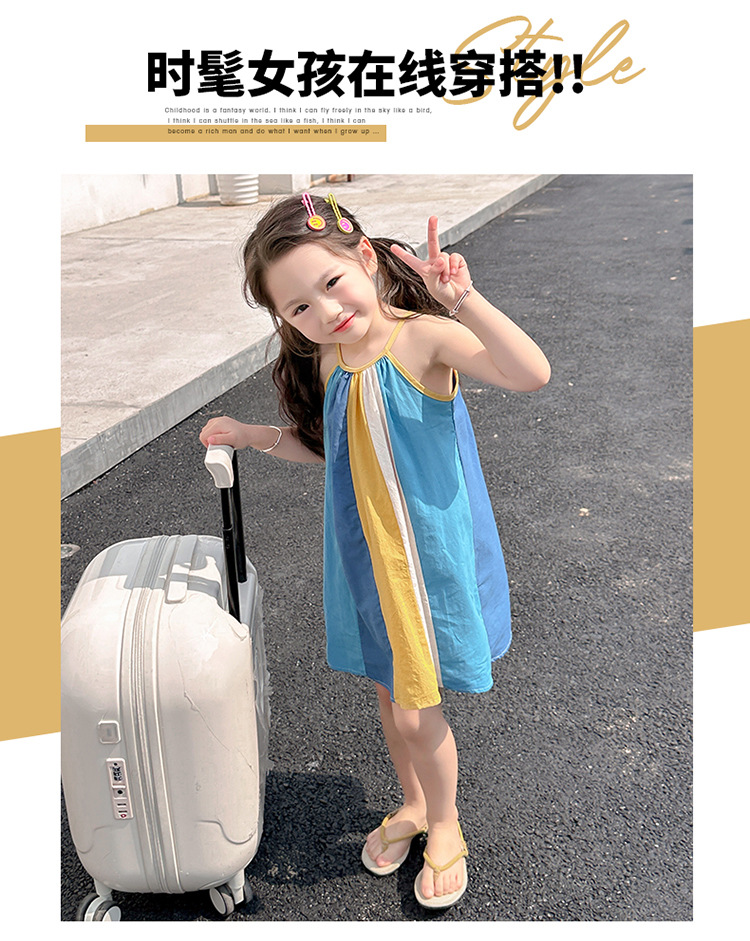 女孩吊带时尚连衣裙2024夏季新款女宝海边度假洋气网红沙滩拼色裙