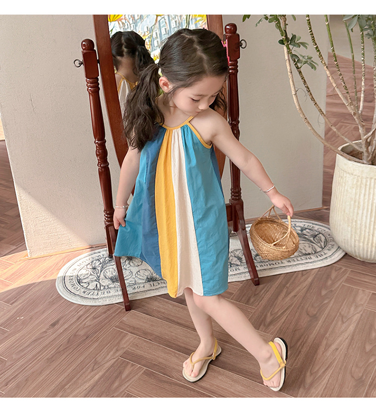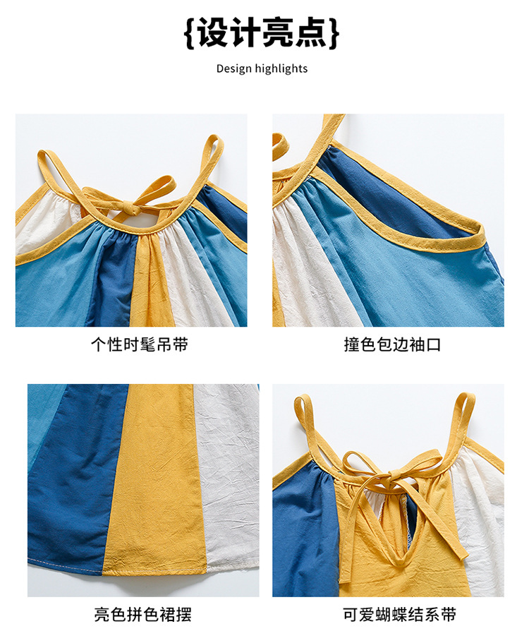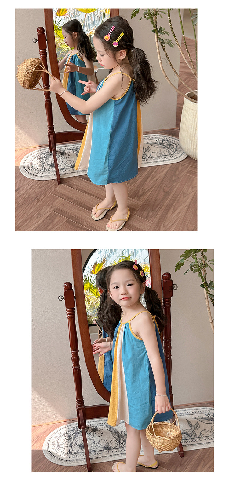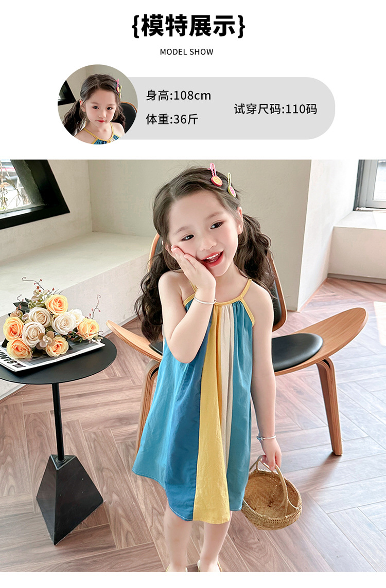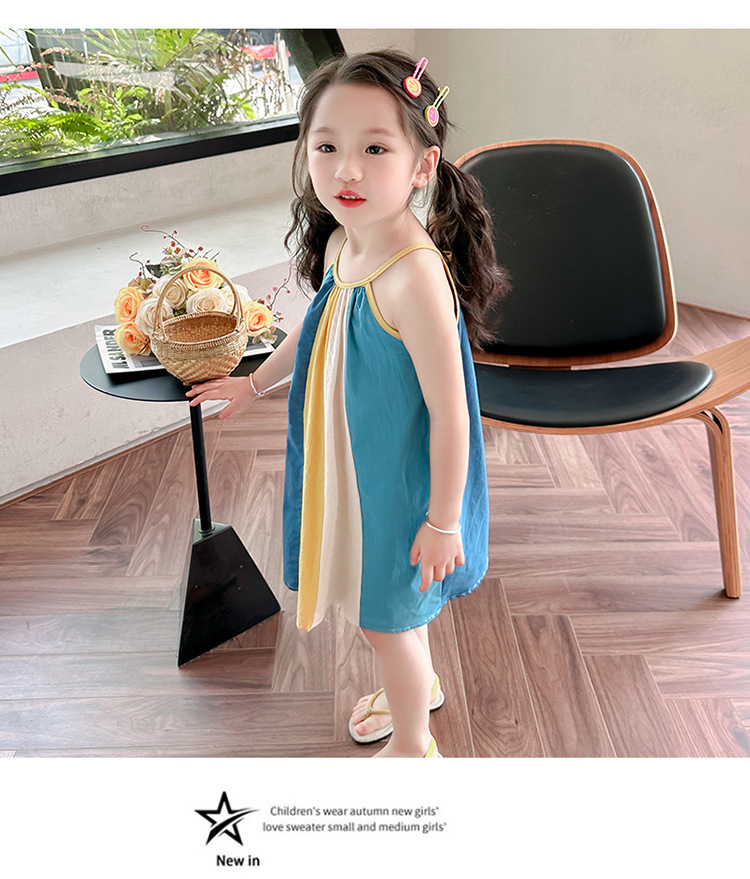 女孩吊带时尚连衣裙2024夏季新款女宝海边度假洋气网红沙滩拼色裙