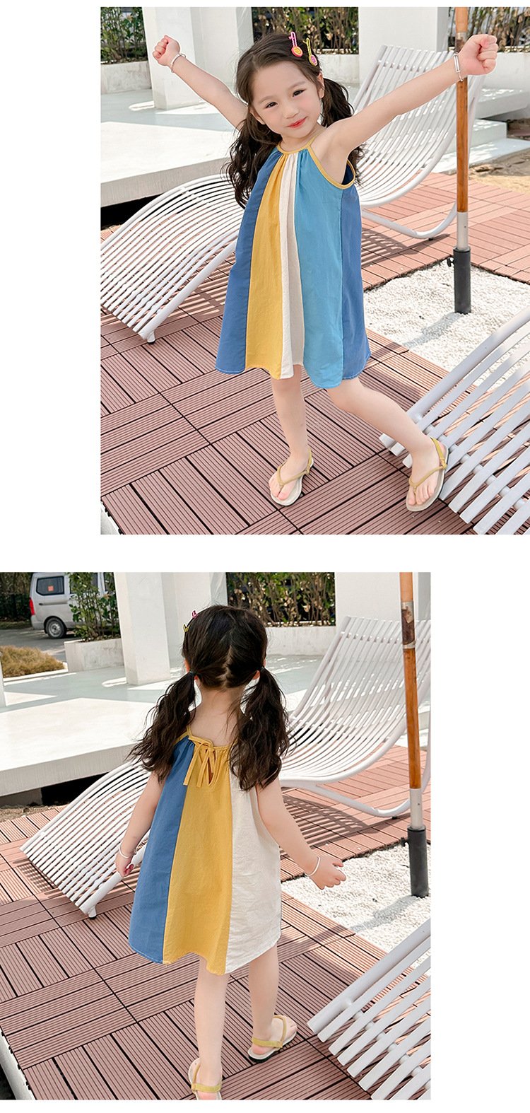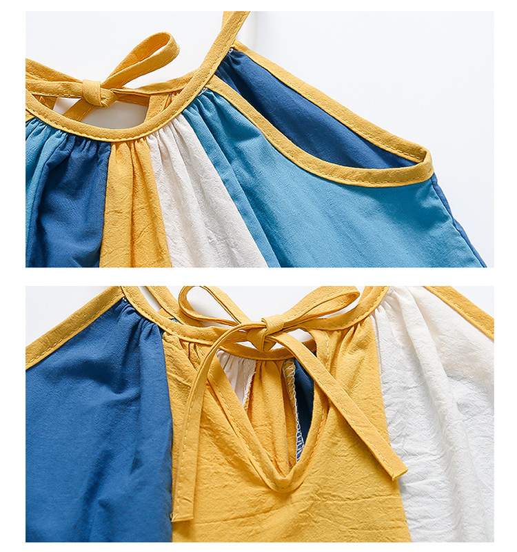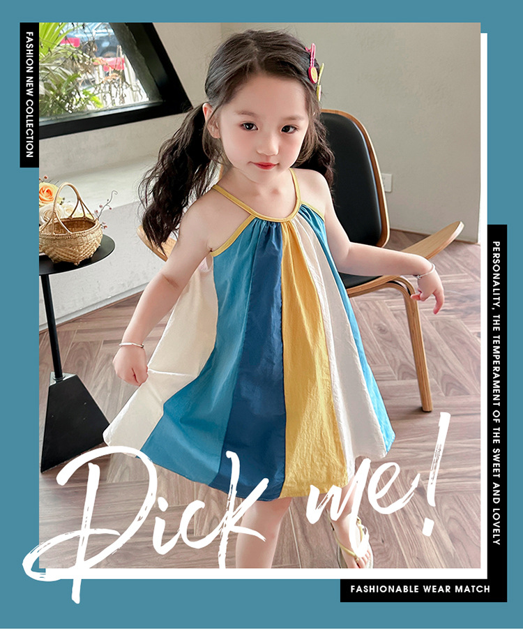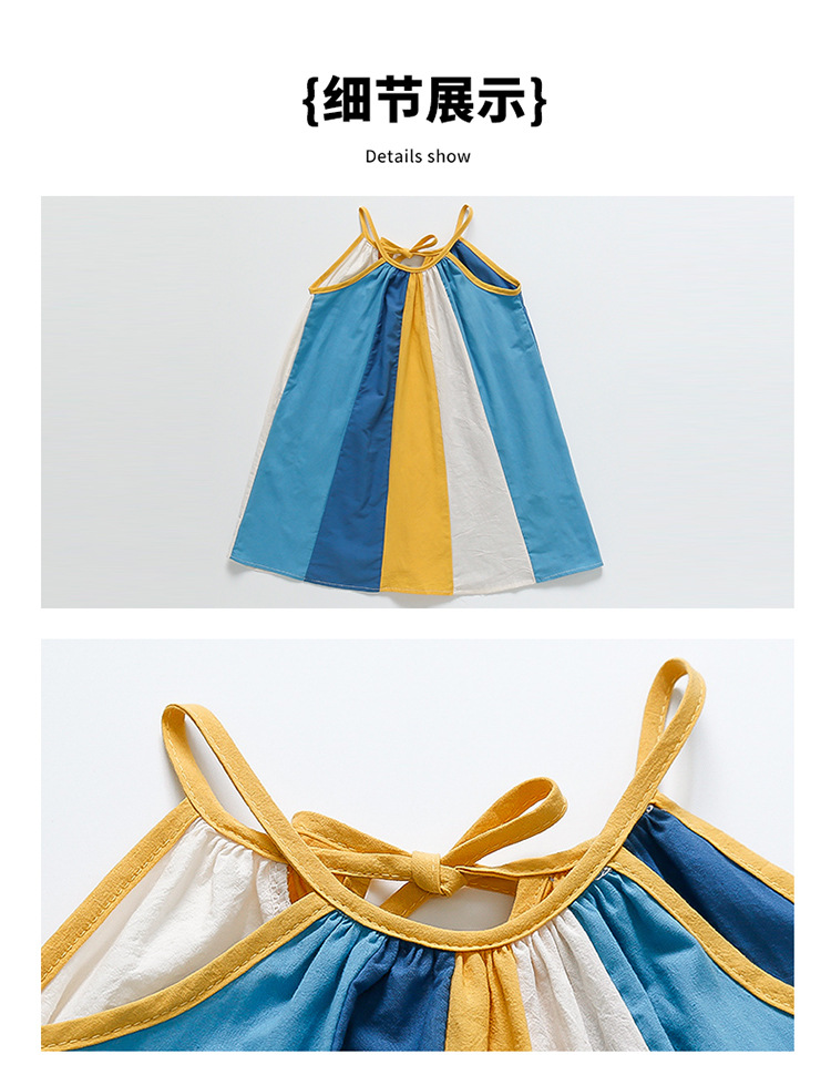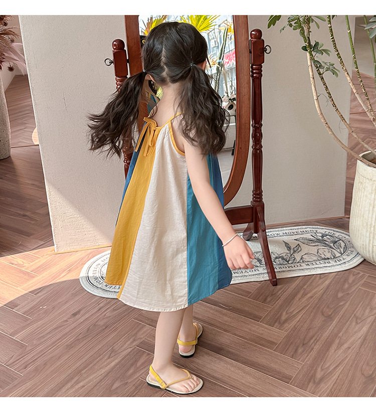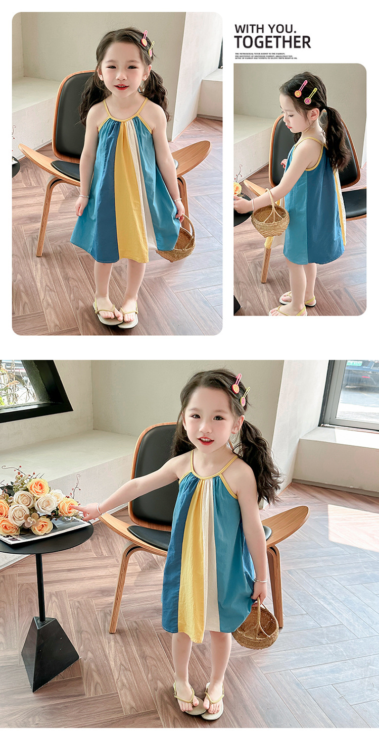女孩吊带时尚连衣裙2024夏季新款女宝海边度假洋气网红沙滩拼色裙