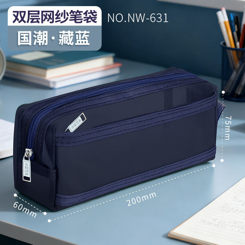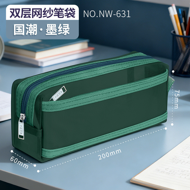 Huajie 메쉬 연필 가방 더블 레이어 대용량 투명 문구 가방 학생 시험 연필 가방 높은 색상 값 간단한스토어 가기