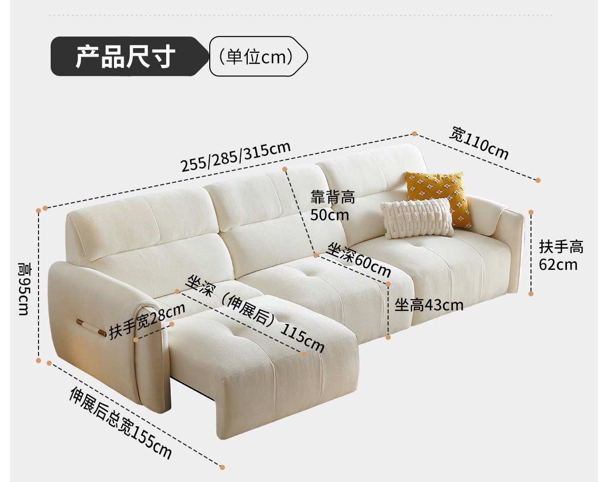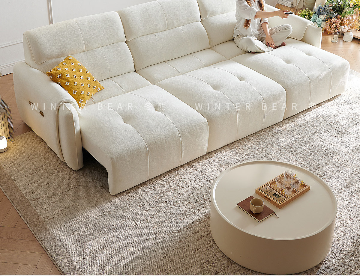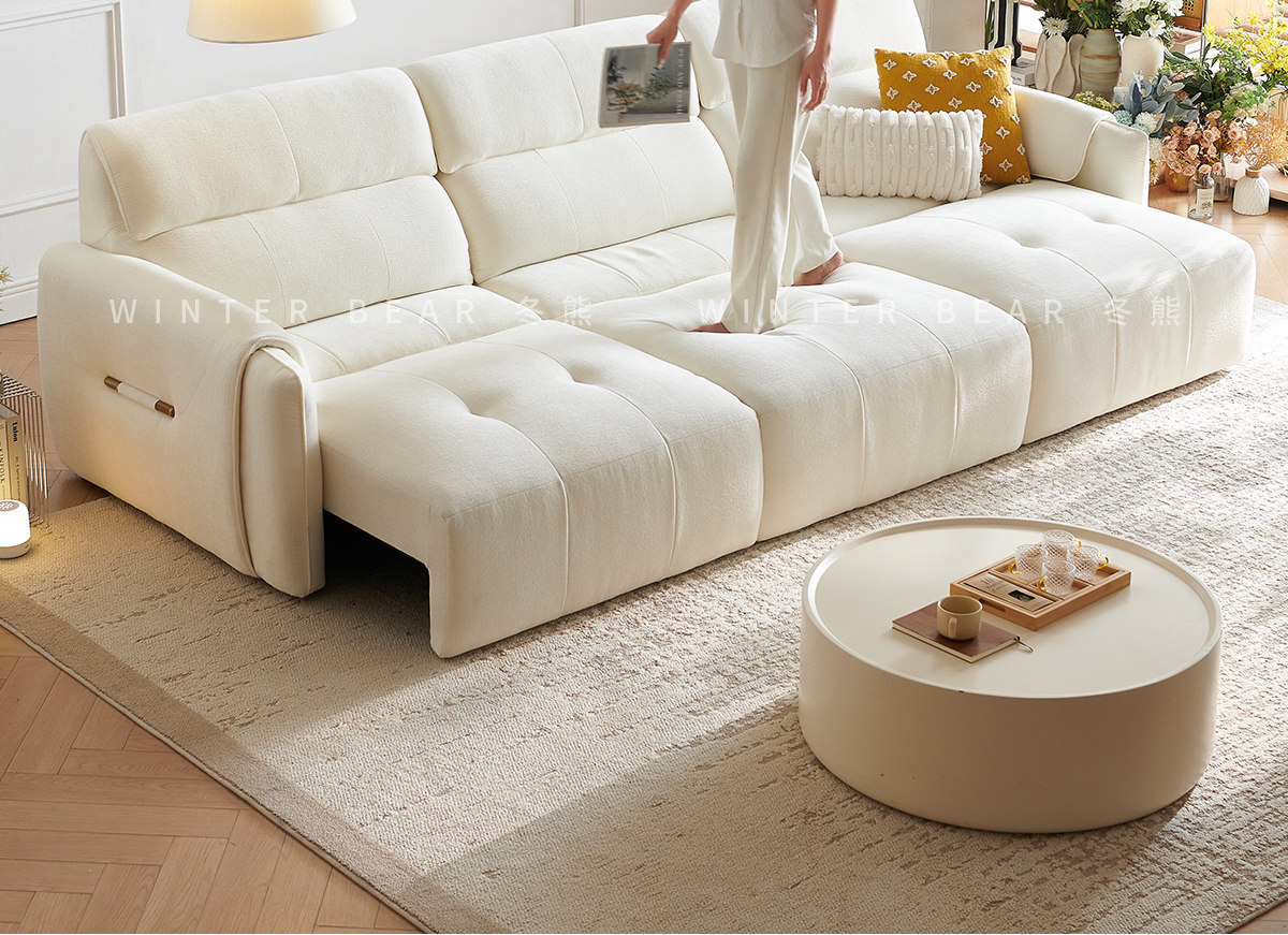 무료 배송 코끼리 귀 전기 직물 소파 거실 스트레이트 크림 스트레칭 작은 아파트 다기능 소파 침대스토어 가기