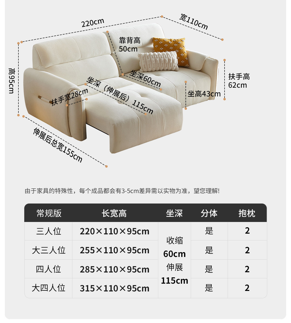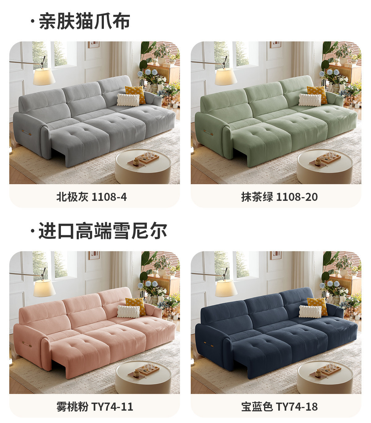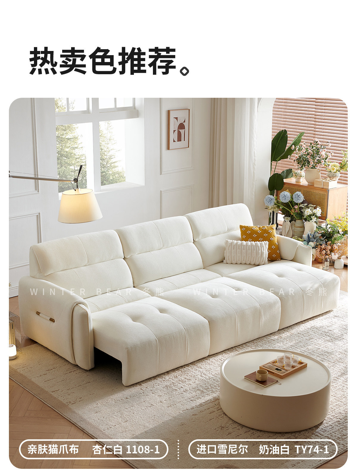 무료 배송 코끼리 귀 전기 직물 소파 거실 스트레이트 크림 스트레칭 작은 아파트 다기능 소파 침대스토어 가기