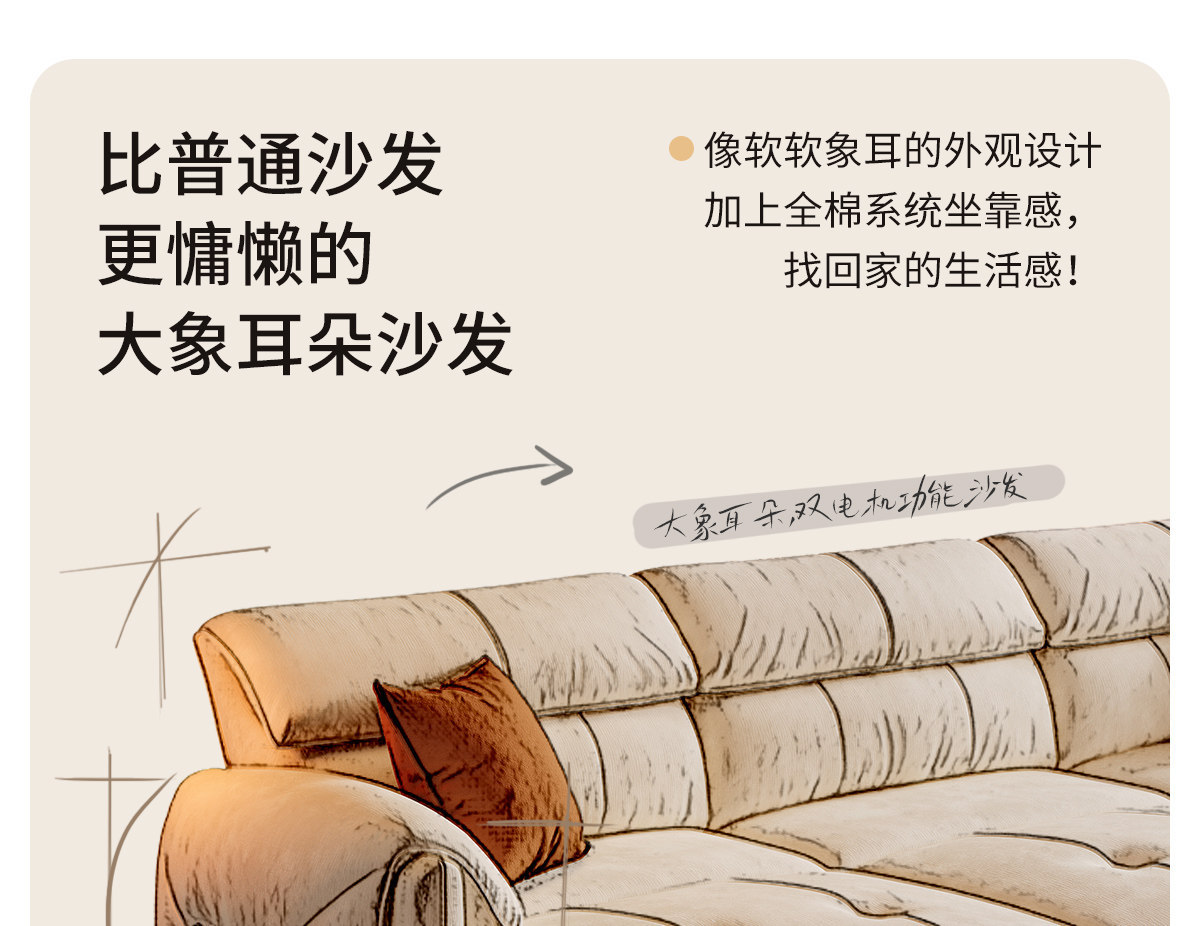 무료 배송 코끼리 귀 전기 직물 소파 거실 스트레이트 크림 스트레칭 작은 아파트 다기능 소파 침대