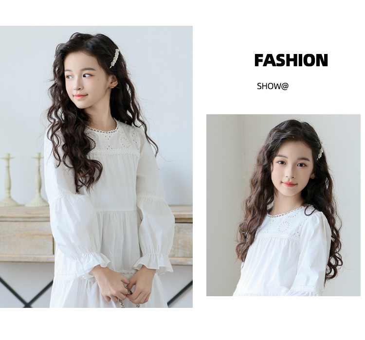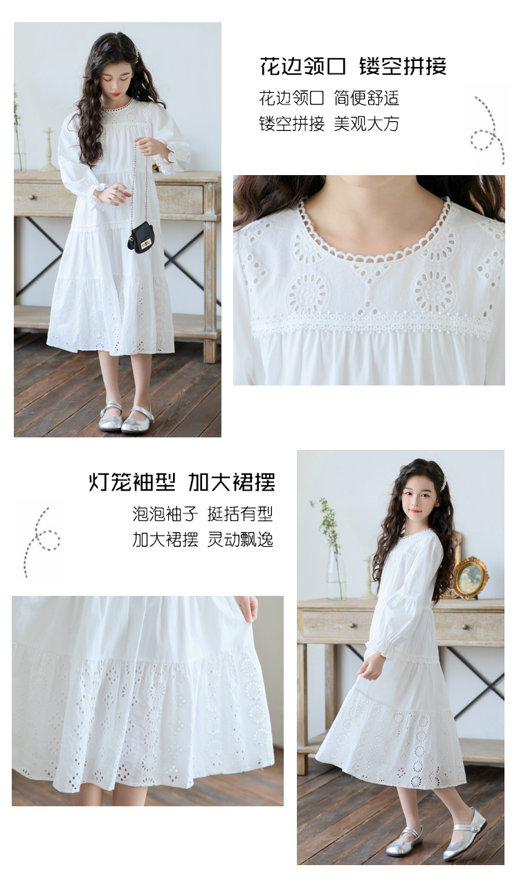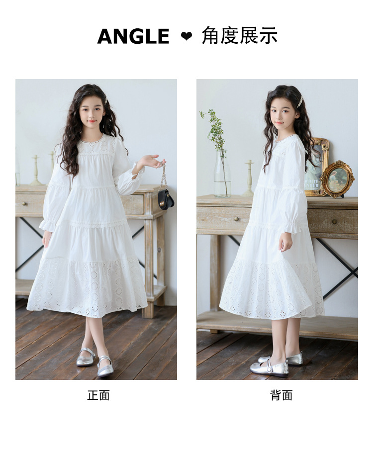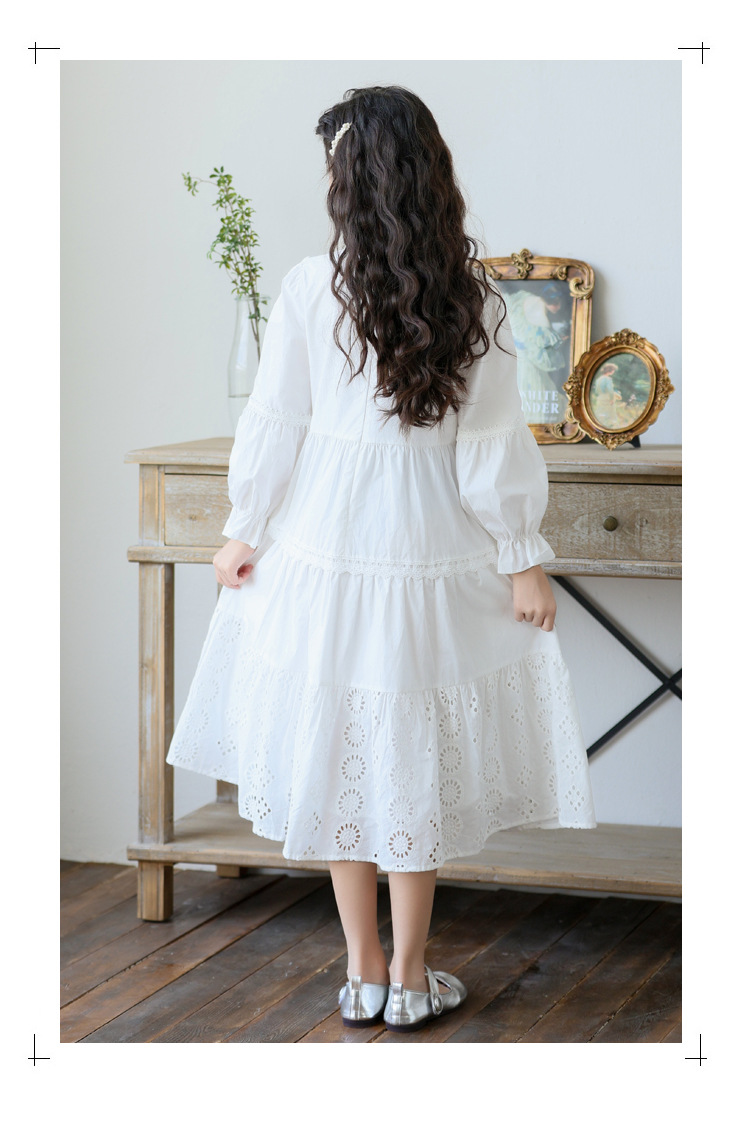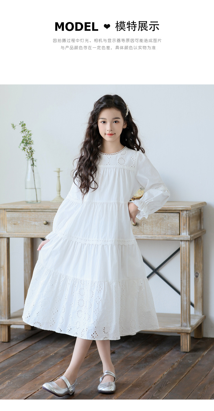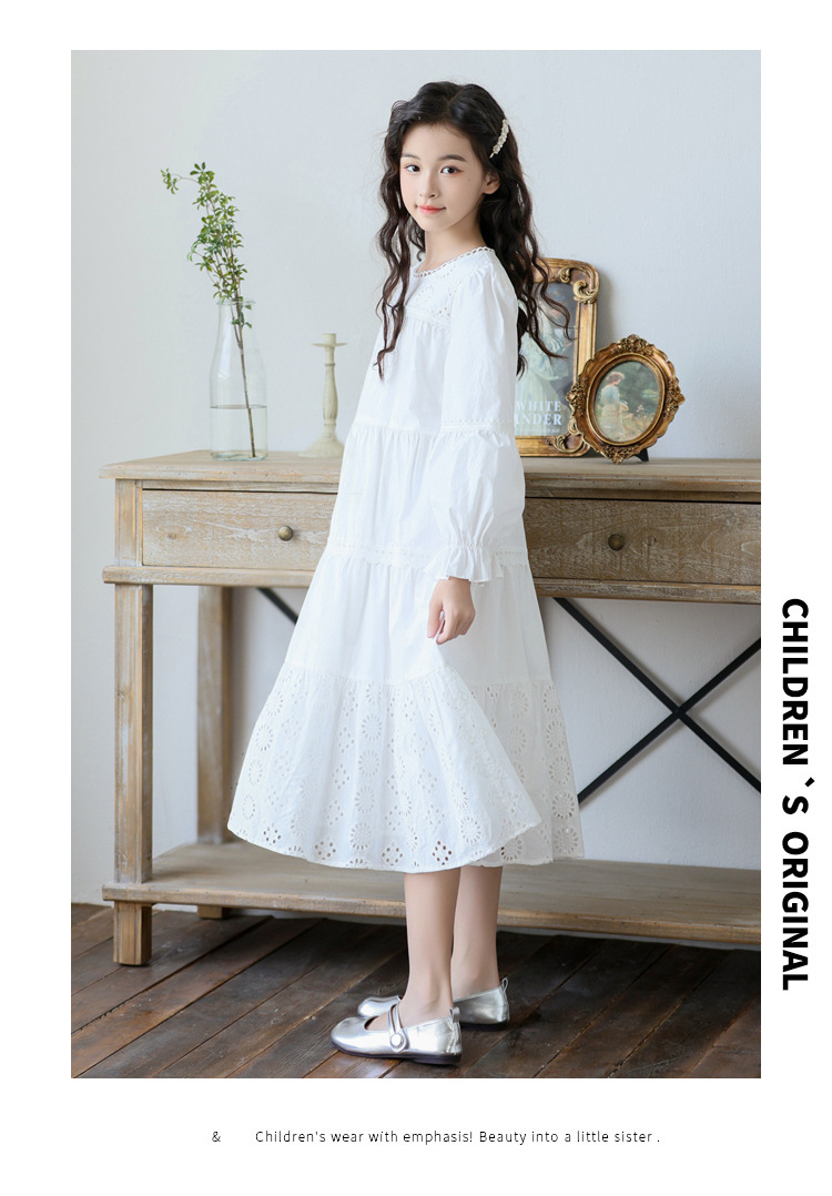 소녀 원피스 가을 긴 소매 레이스 할로우 스커트 2024 새로운 큰 어린이 어린 소녀 공주 스커트스토어 가기