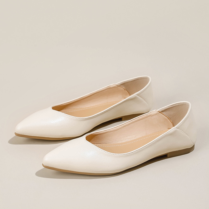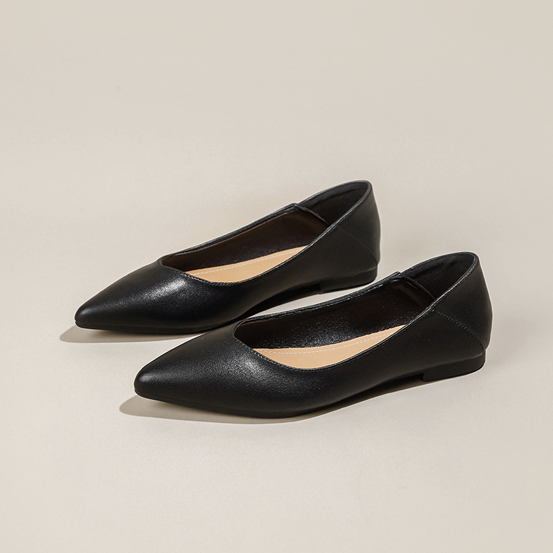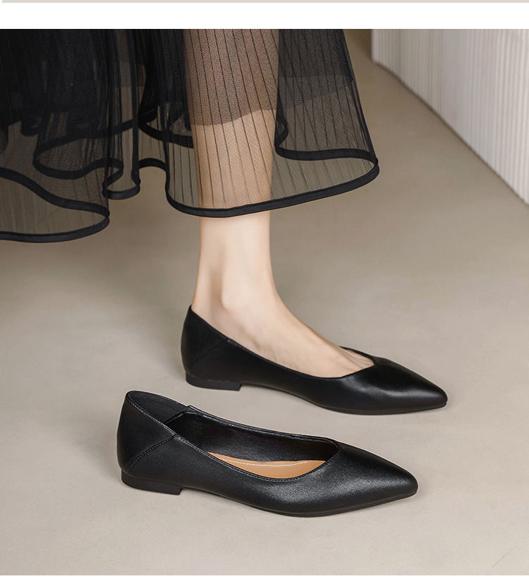 여성용 싱글 슈즈 2026 봄 여름 신상품 포인티드 토 투웨어 플랫 소프트 가죽 통근용 만능 미끄럼 방지 워크 슈즈 캐주얼 여성화스토어 가기