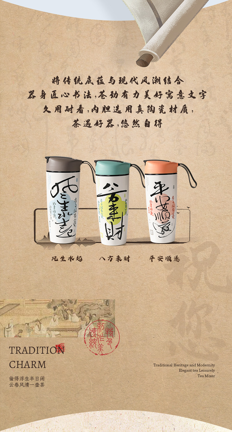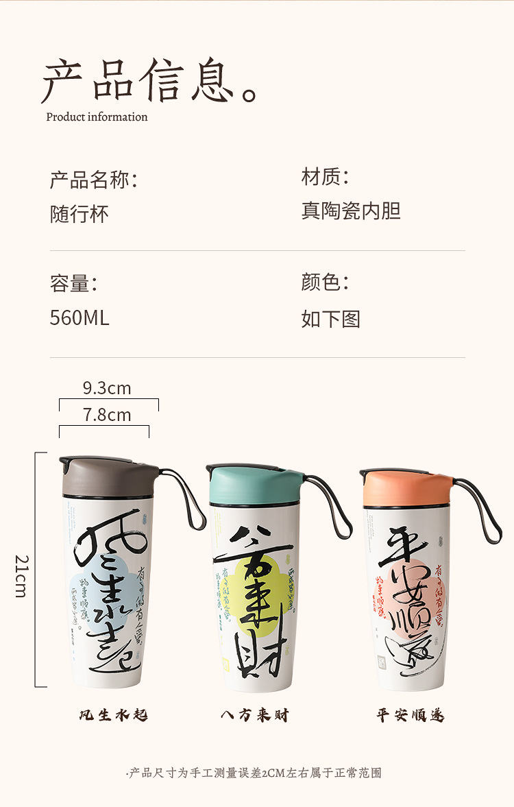 세라믹 라이너 보온병 컵 사무실 손잡이 대용량 뼈 중국 전통 한약 차 컵 남성과 여성 비즈니스