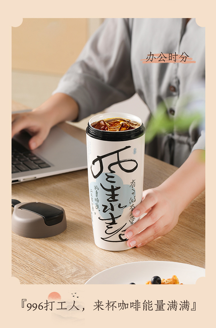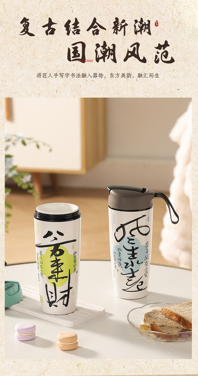 세라믹 라이너 보온병 컵 사무실 손잡이 대용량 뼈 중국 전통 한약 차 컵 남성과 여성 비즈니스스토어 가기