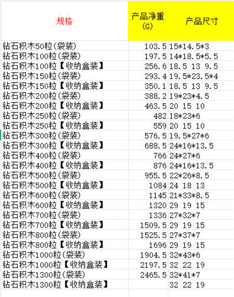 • 다이아몬드 빌딩 블록 1300개(가방에 포장)
