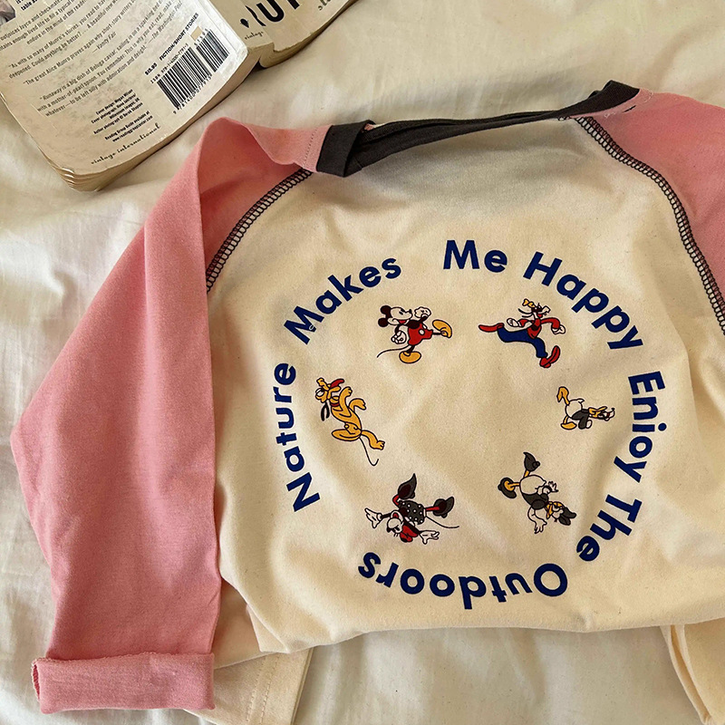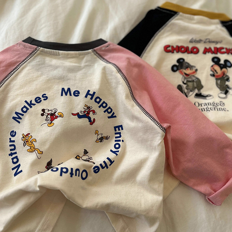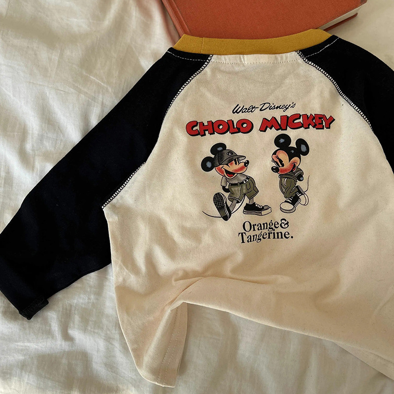 순면 남녀 아동용 티셔츠 긴팔 상의 2026 만화 미키 캐주얼 다용도 아동용 이너웨어 봄 가을스토어 가기