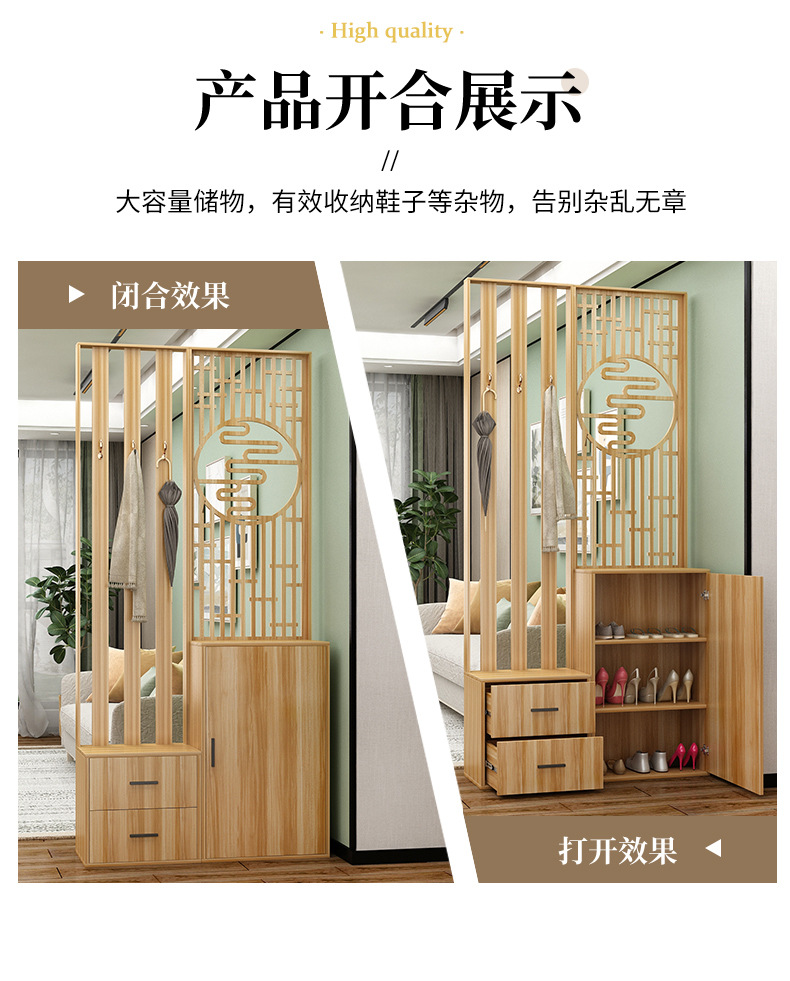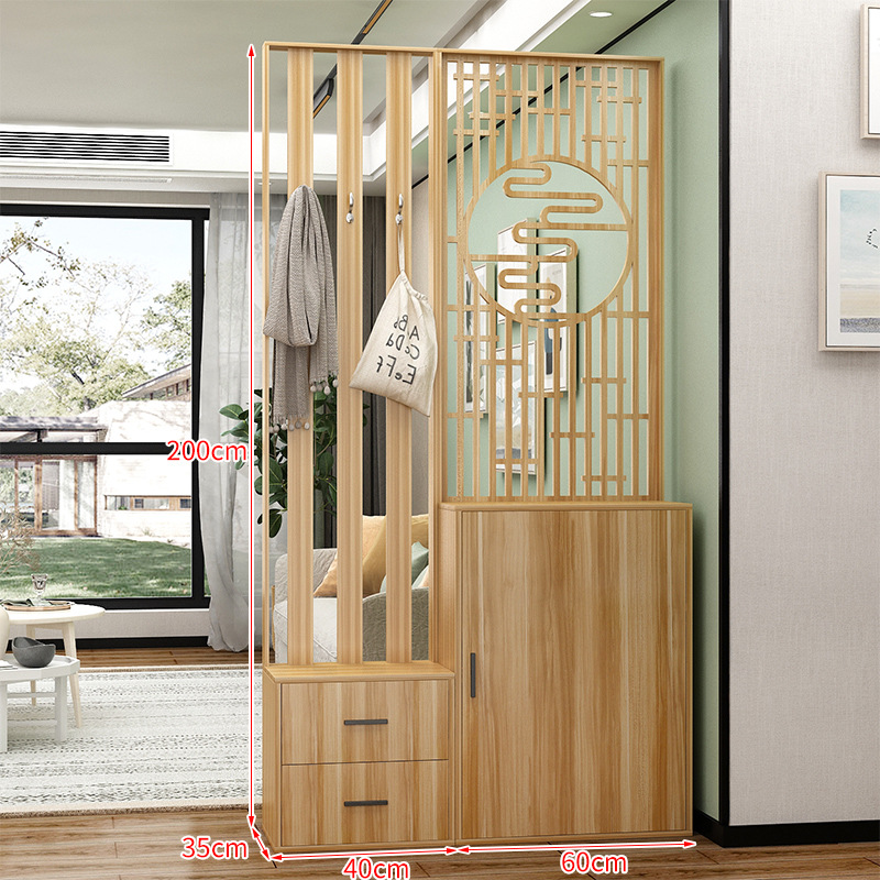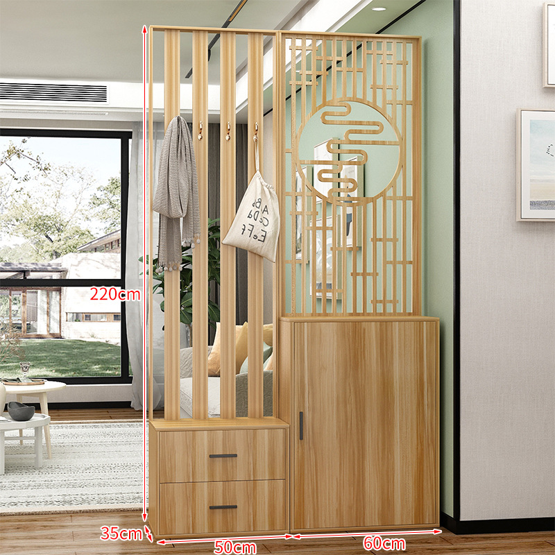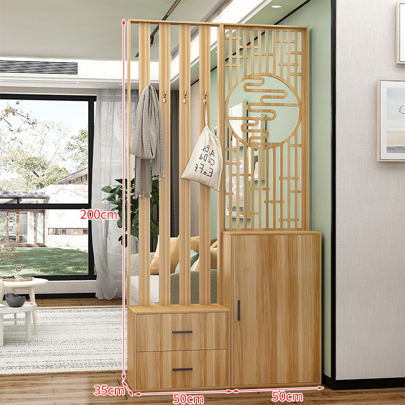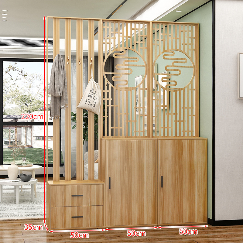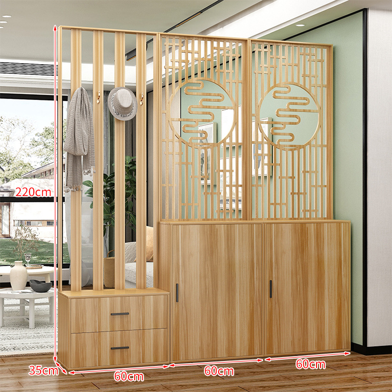 새로운 중국 스타일 거실 솔리드 우드 스크린 파티션 엔트리 도어 엔트리 로그 컬러 입구 캐비닛 신발 캐비닛 시트 시트 통합 샤링스토어 가기