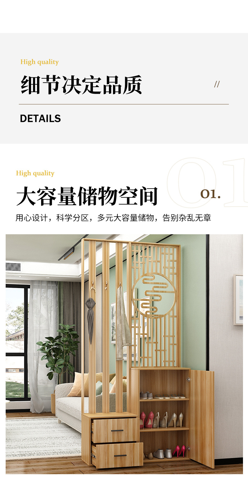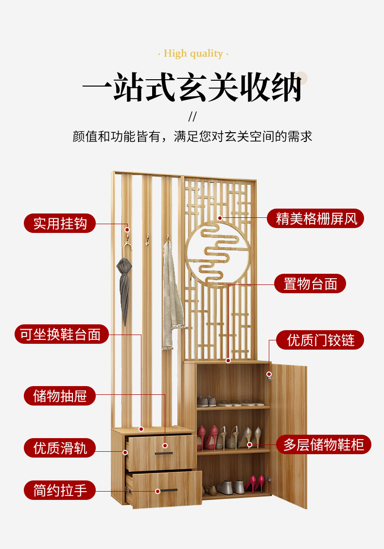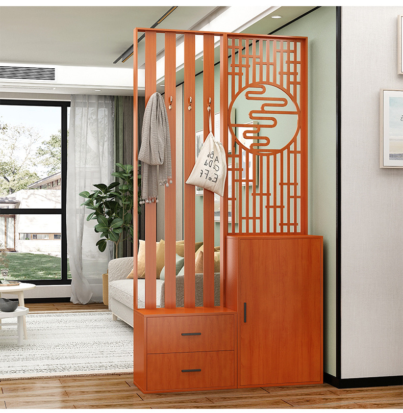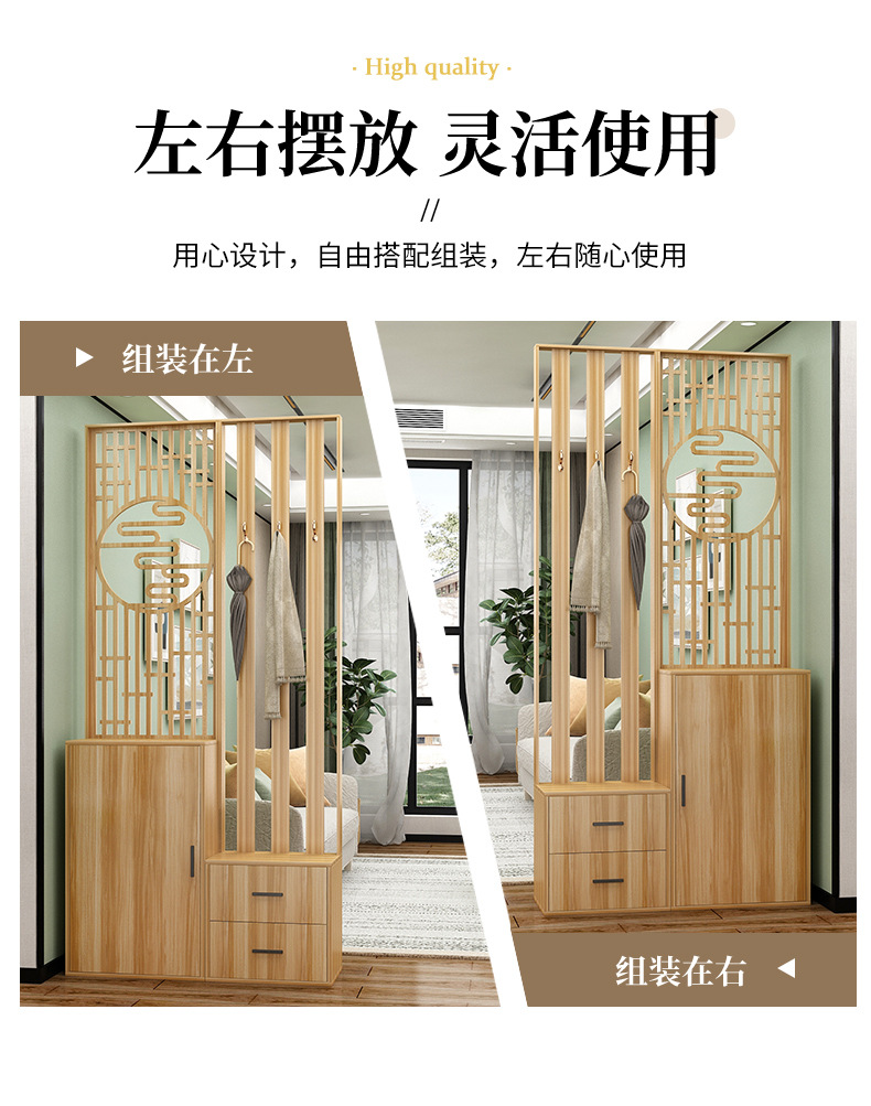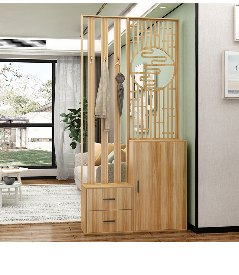 새로운 중국 스타일 거실 솔리드 우드 스크린 파티션 엔트리 도어 엔트리 로그 컬러 입구 캐비닛 신발 캐비닛 시트 시트 통합 샤링스토어 가기