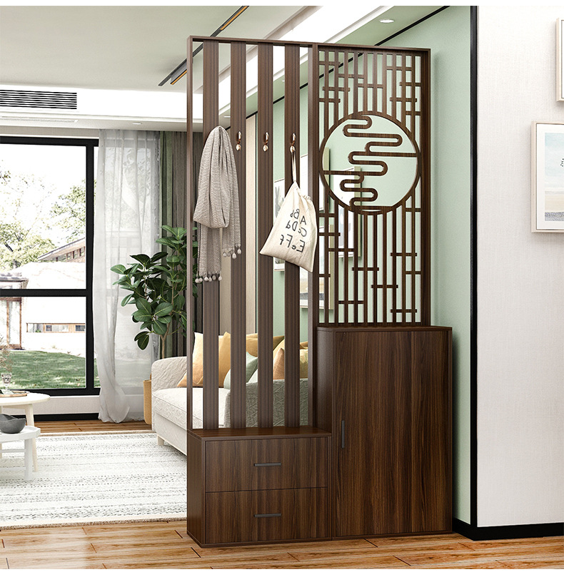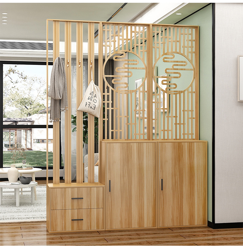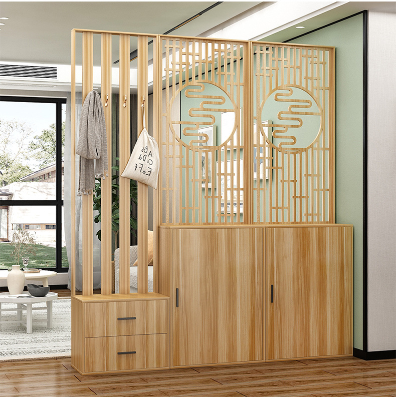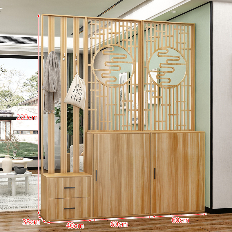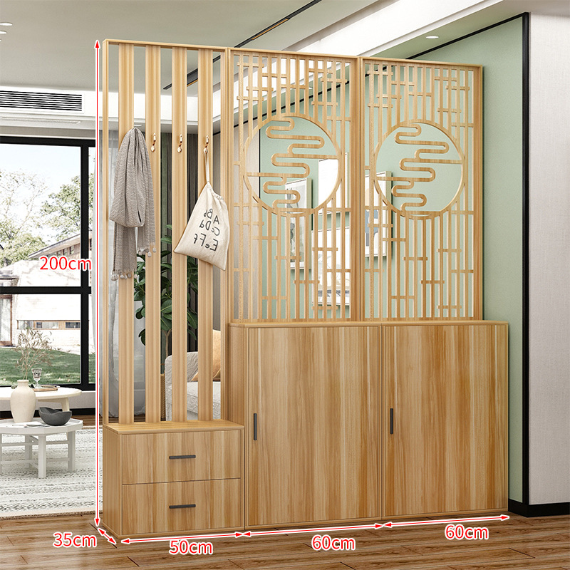 새로운 중국 스타일 거실 솔리드 우드 스크린 파티션 엔트리 도어 엔트리 로그 컬러 입구 캐비닛 신발 캐비닛 시트 시트 통합 샤링
