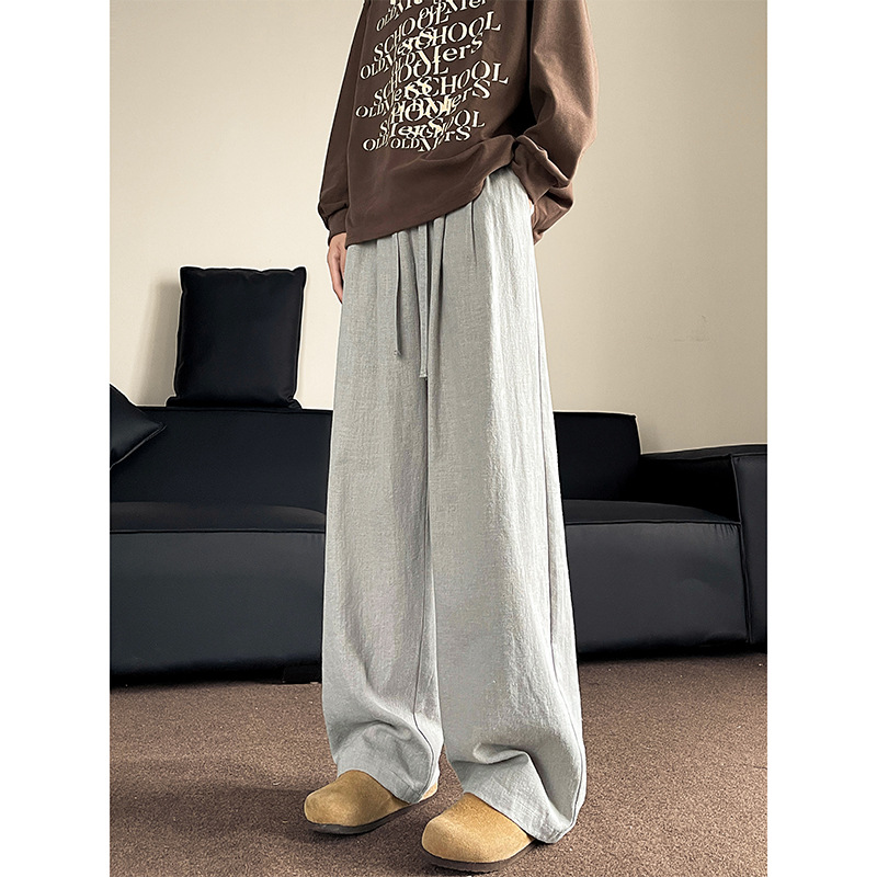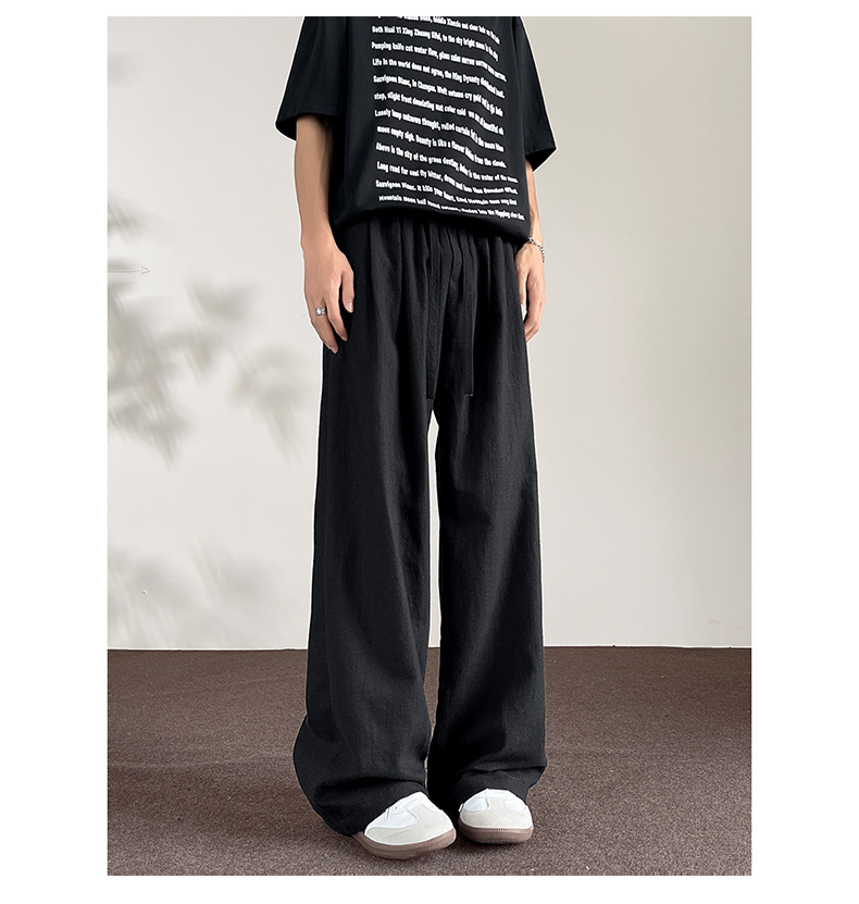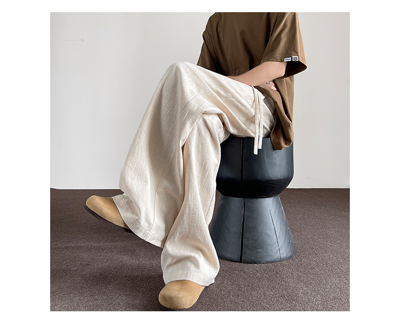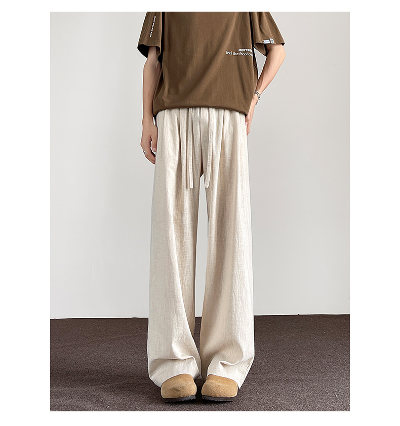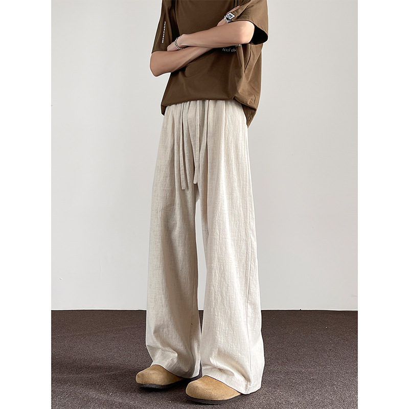 Huagang 카멜 리넨 코튼 리넨 바지 남자 통기성 투약 스트레이트 느슨한 봄 여름 가을 넓은 다리 캐주얼 긴 바지