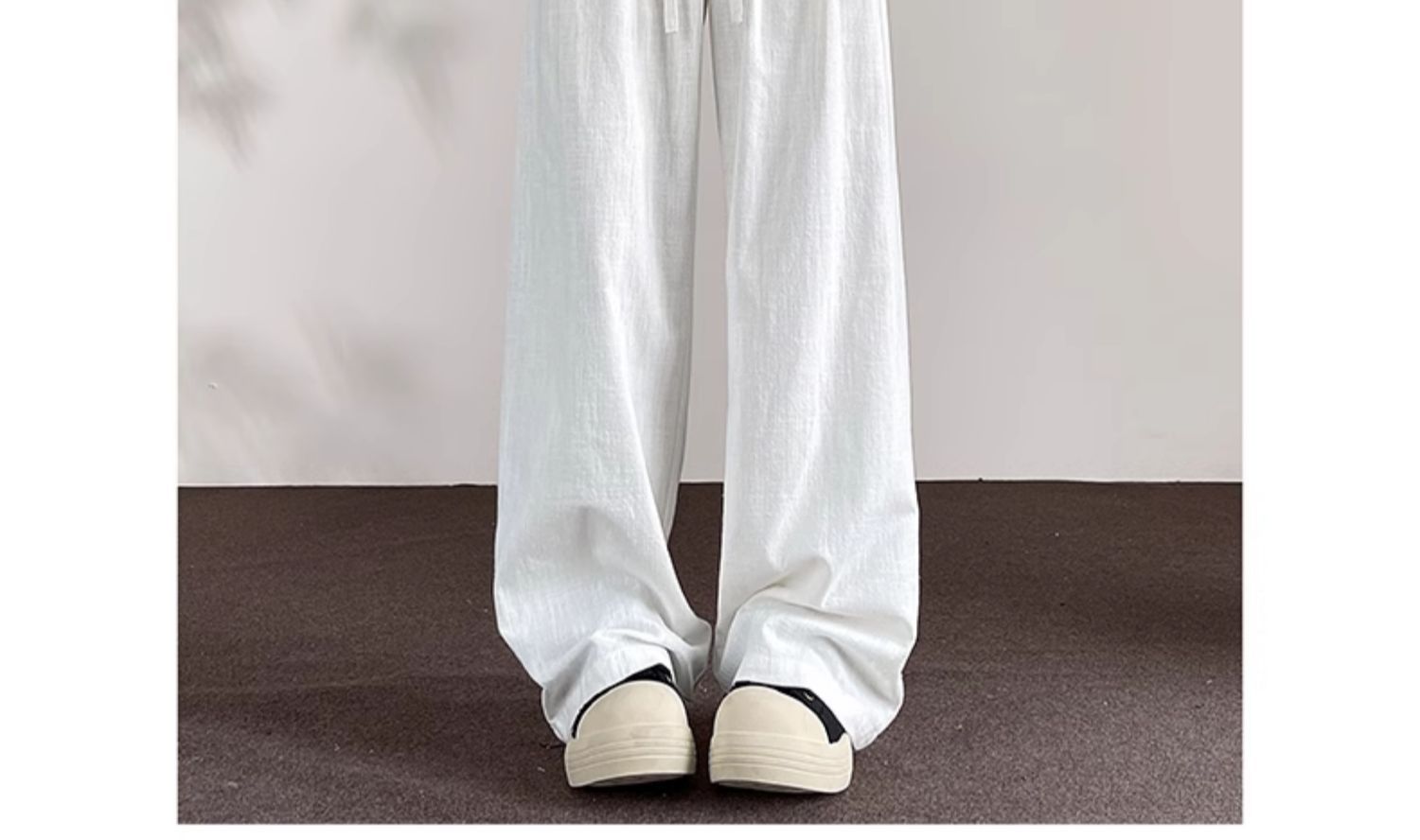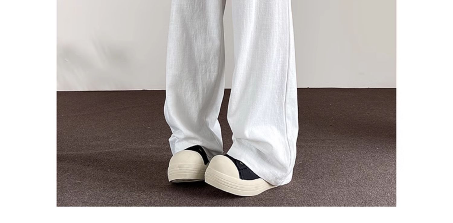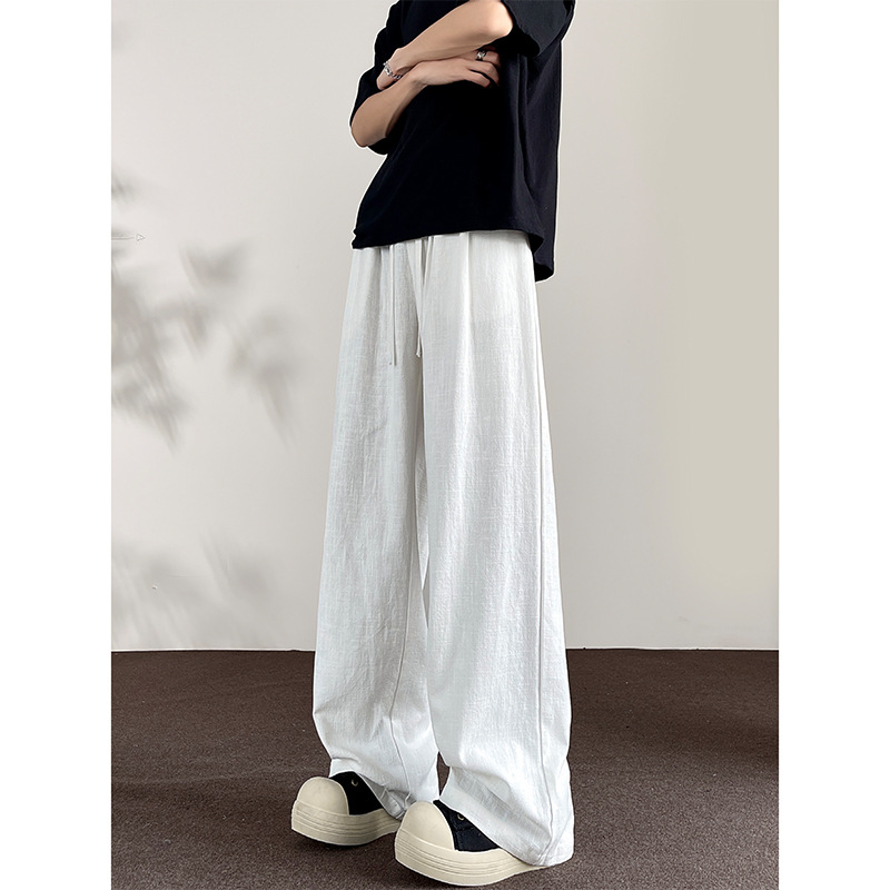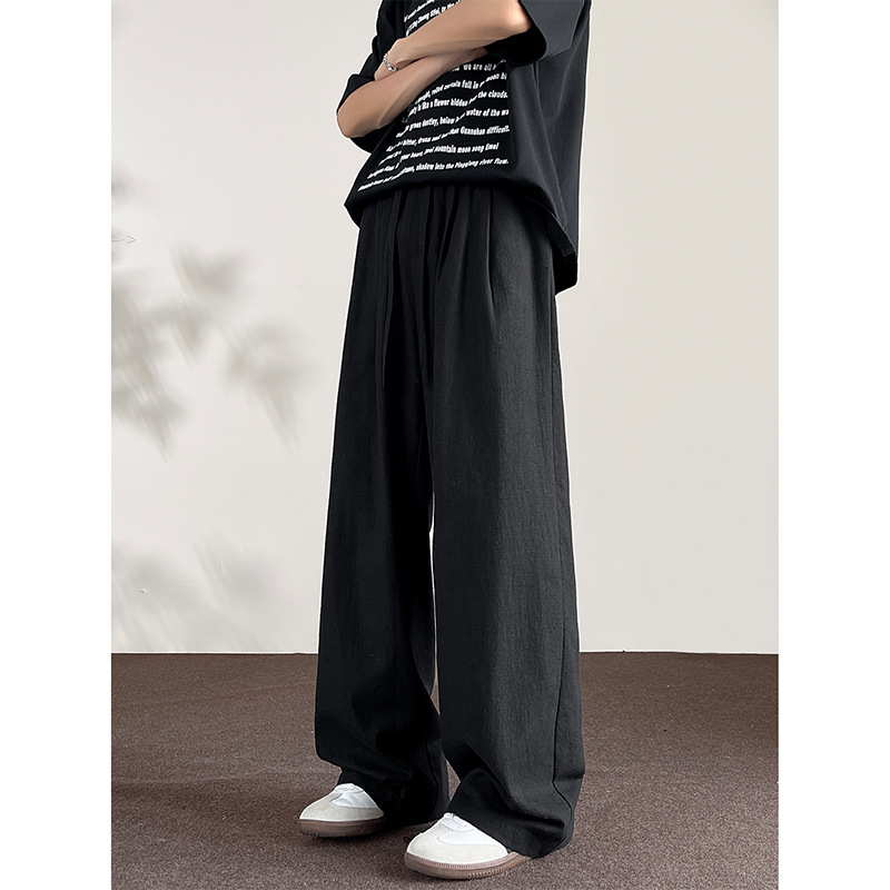 Huagang 카멜 리넨 코튼 리넨 바지 남자 통기성 투약 스트레이트 느슨한 봄 여름 가을 넓은 다리 캐주얼 긴 바지