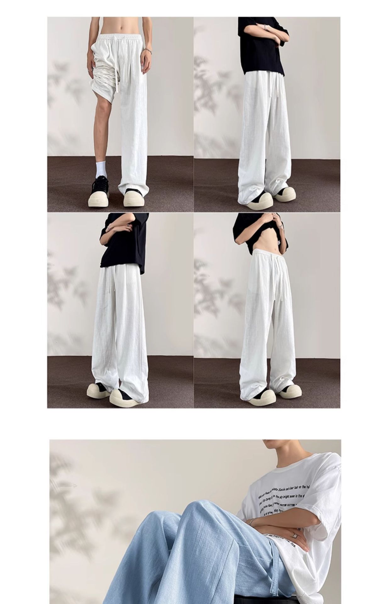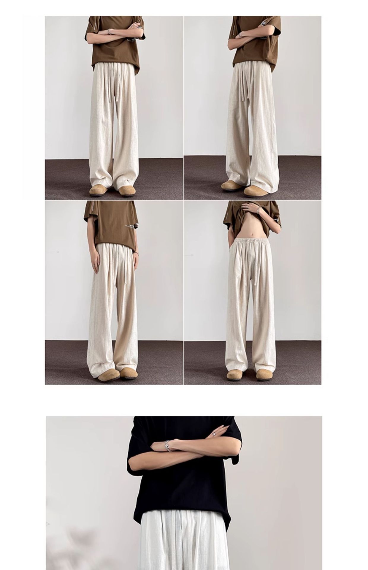 Huagang 카멜 리넨 코튼 리넨 바지 남자 통기성 투약 스트레이트 느슨한 봄 여름 가을 넓은 다리 캐주얼 긴 바지스토어 가기