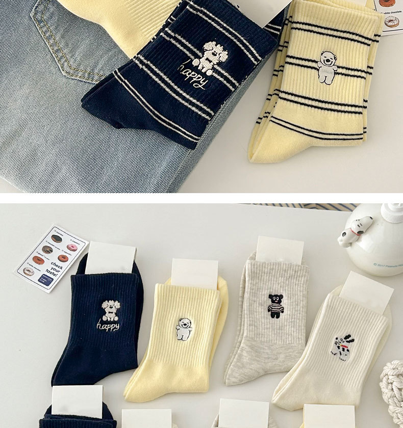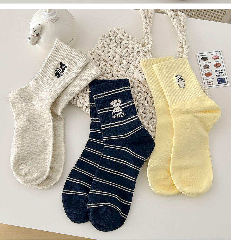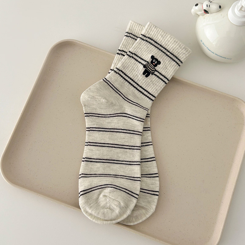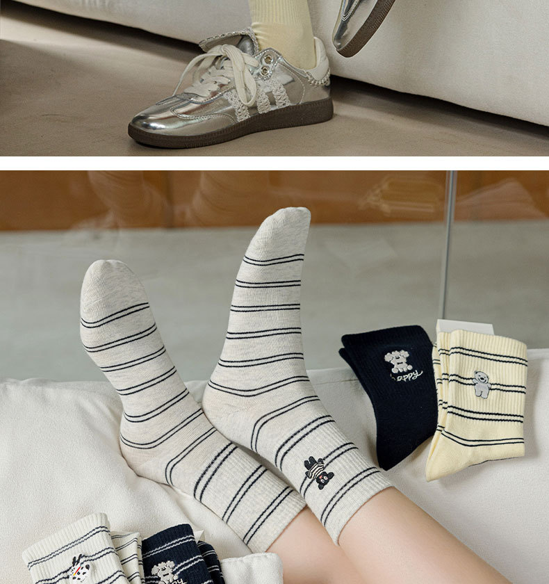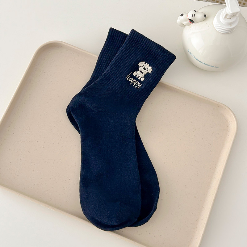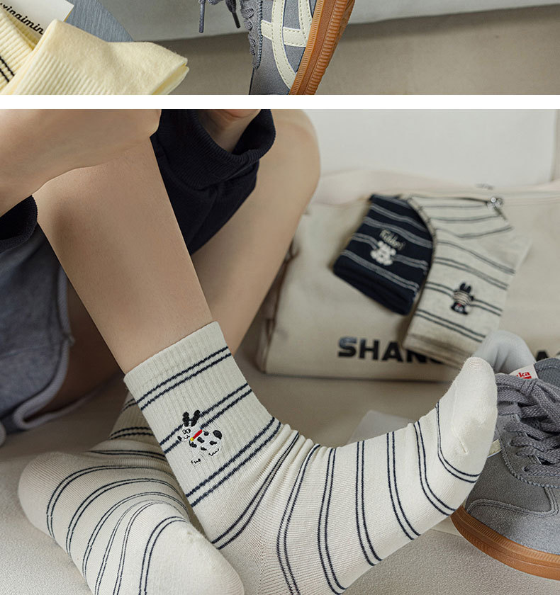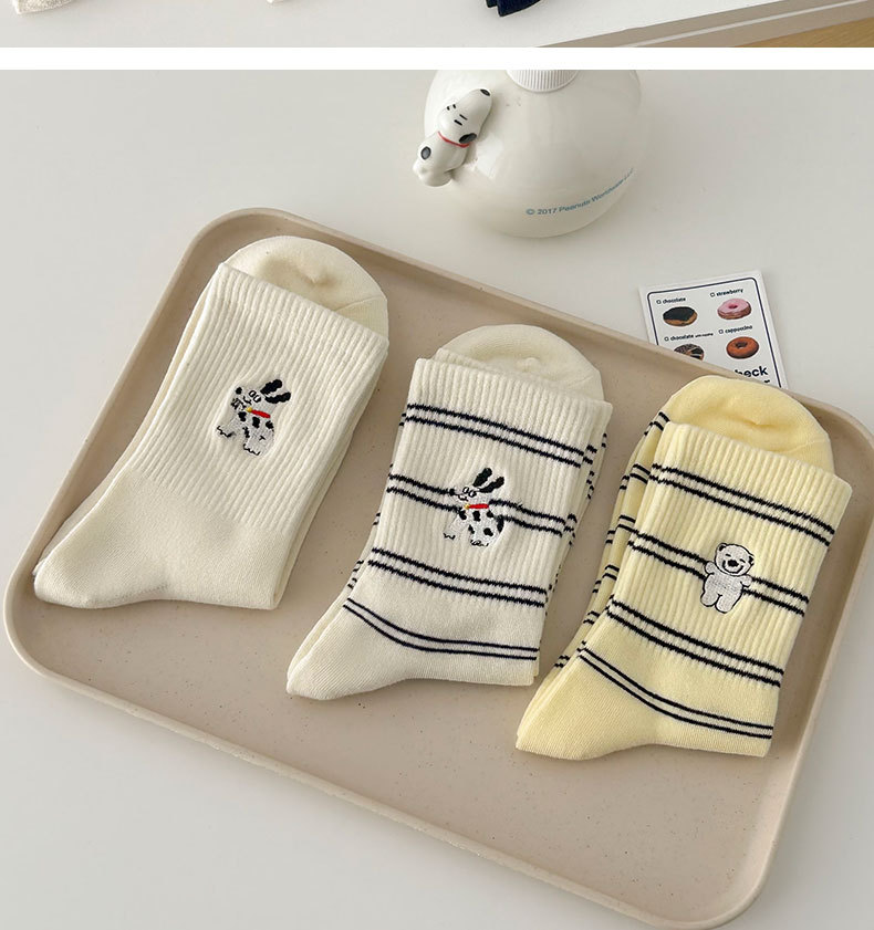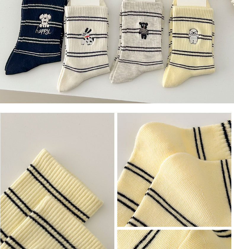 가을 새로운 귀여운 개 자수 유행 양말 치유 스트라이프 미드 양말 Ins 캐주얼 스태킹 양말 여성용 면화 양말스토어 가기