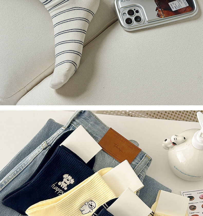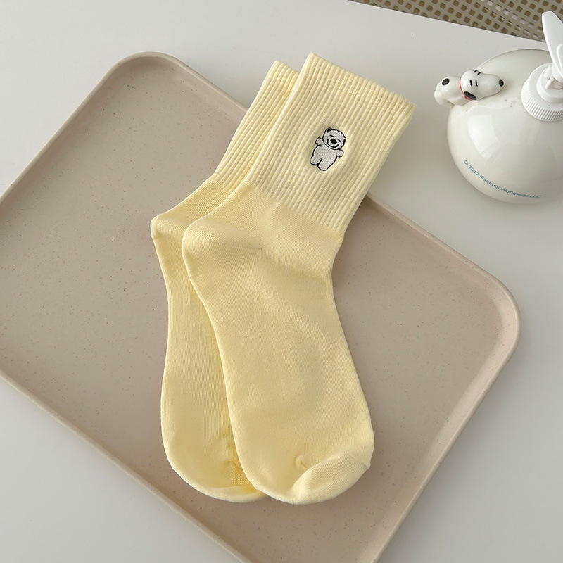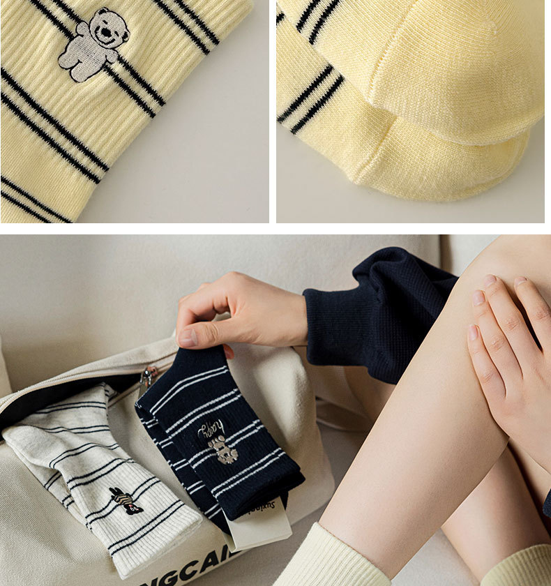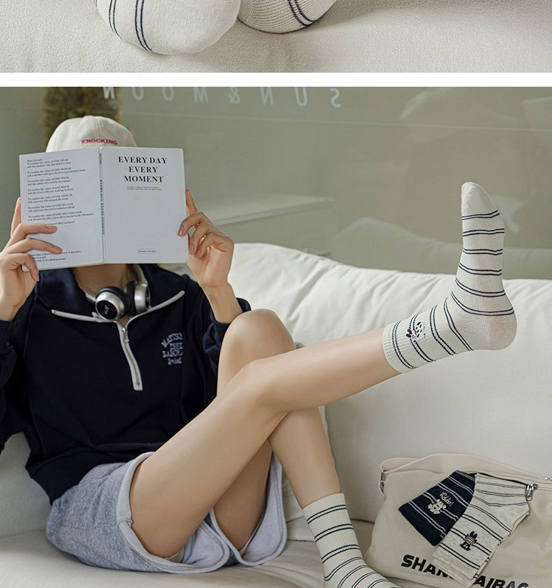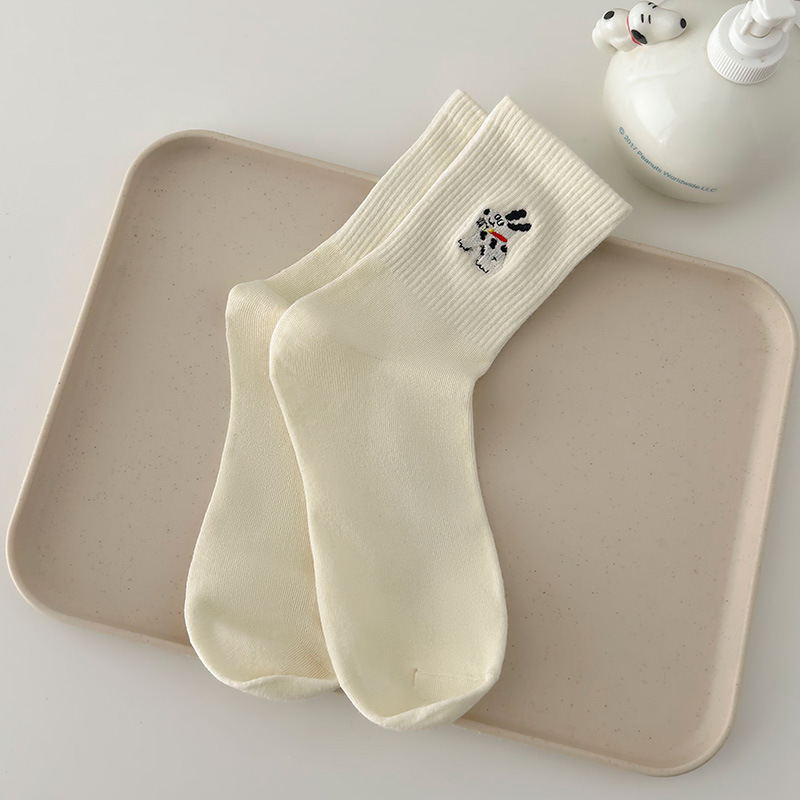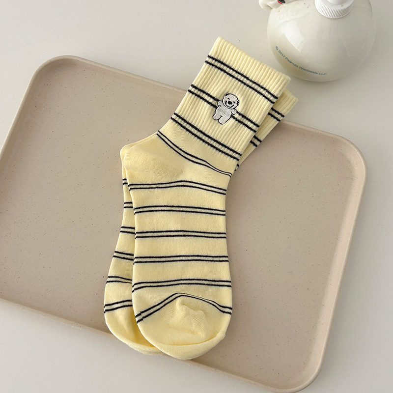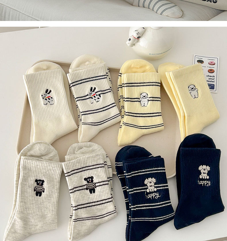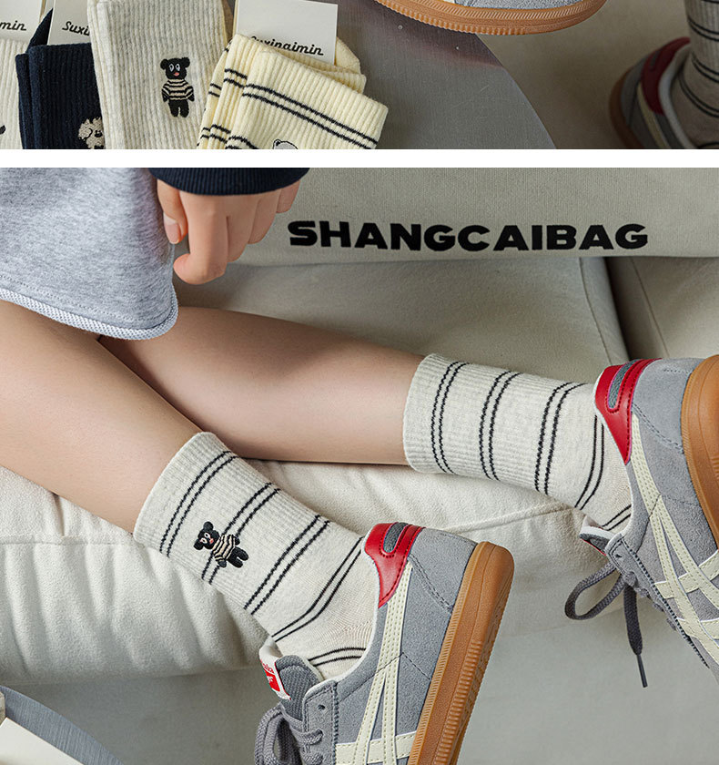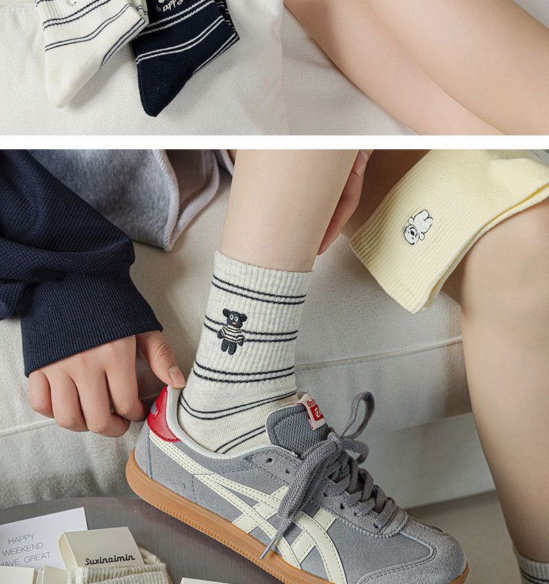 가을 새로운 귀여운 개 자수 유행 양말 치유 스트라이프 미드 양말 Ins 캐주얼 스태킹 양말 여성용 면화 양말스토어 가기