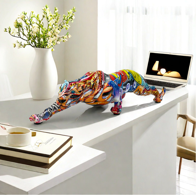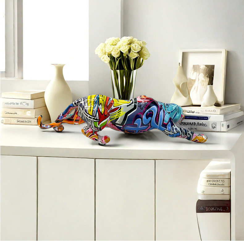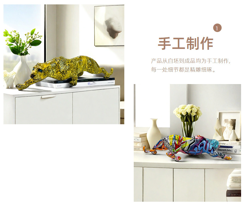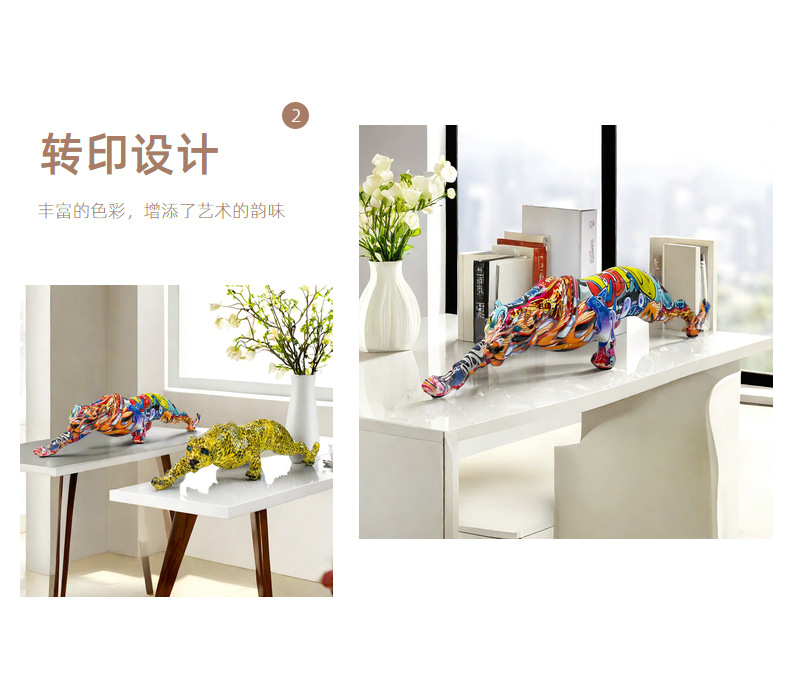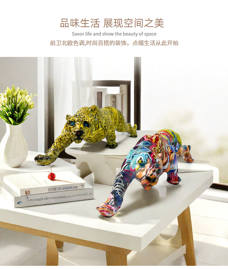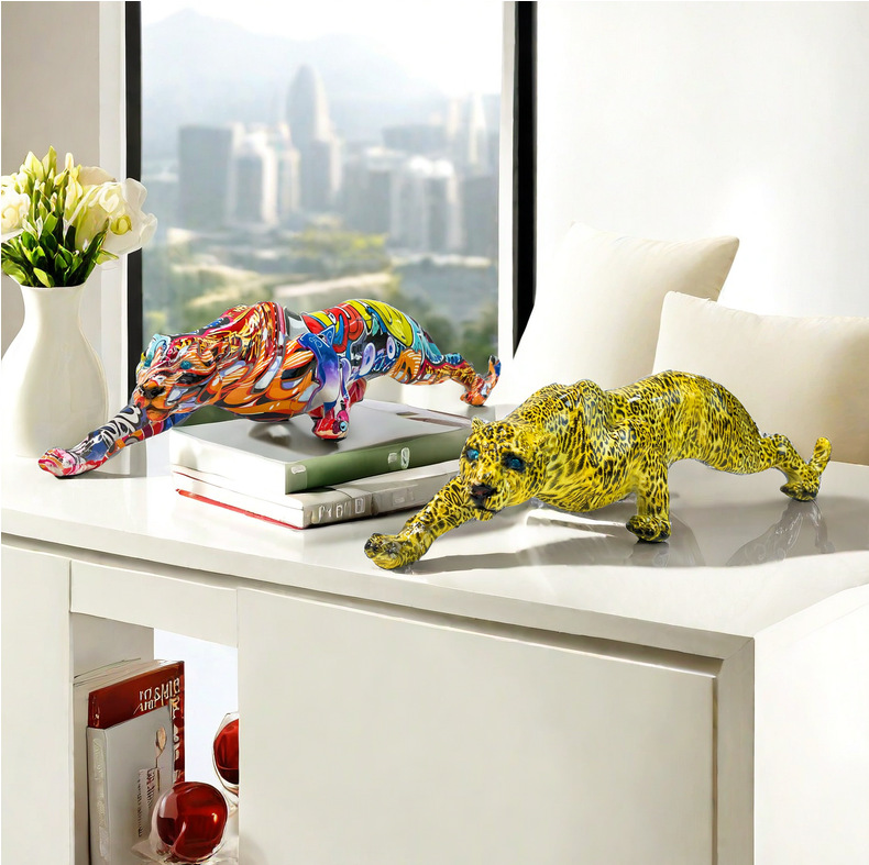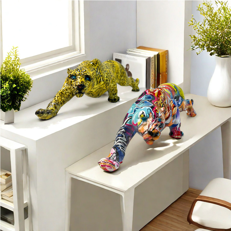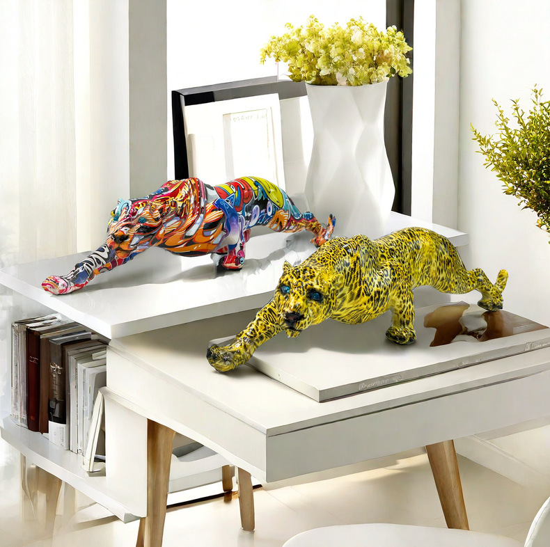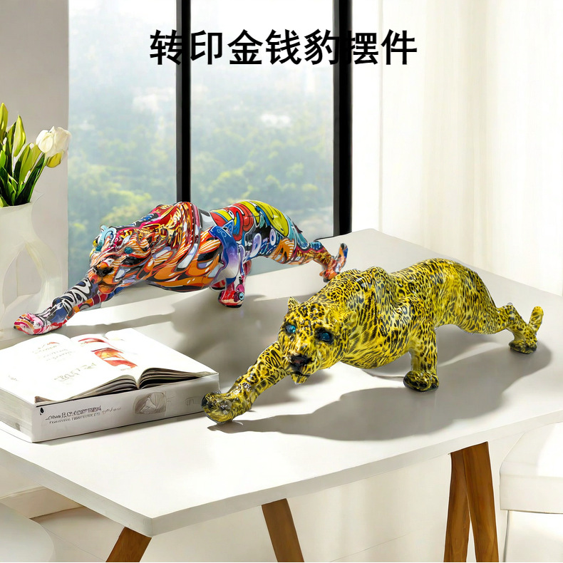 국경 간 뜨거운 판매 레오파드 동물 새로운 장식품 수지 공예 TV 내각 입구 사무실 장식