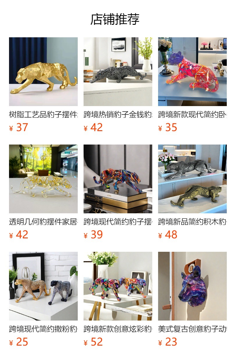 국경 간 뜨거운 판매 레오파드 동물 새로운 장식품 수지 공예 TV 내각 입구 사무실 장식스토어 가기
