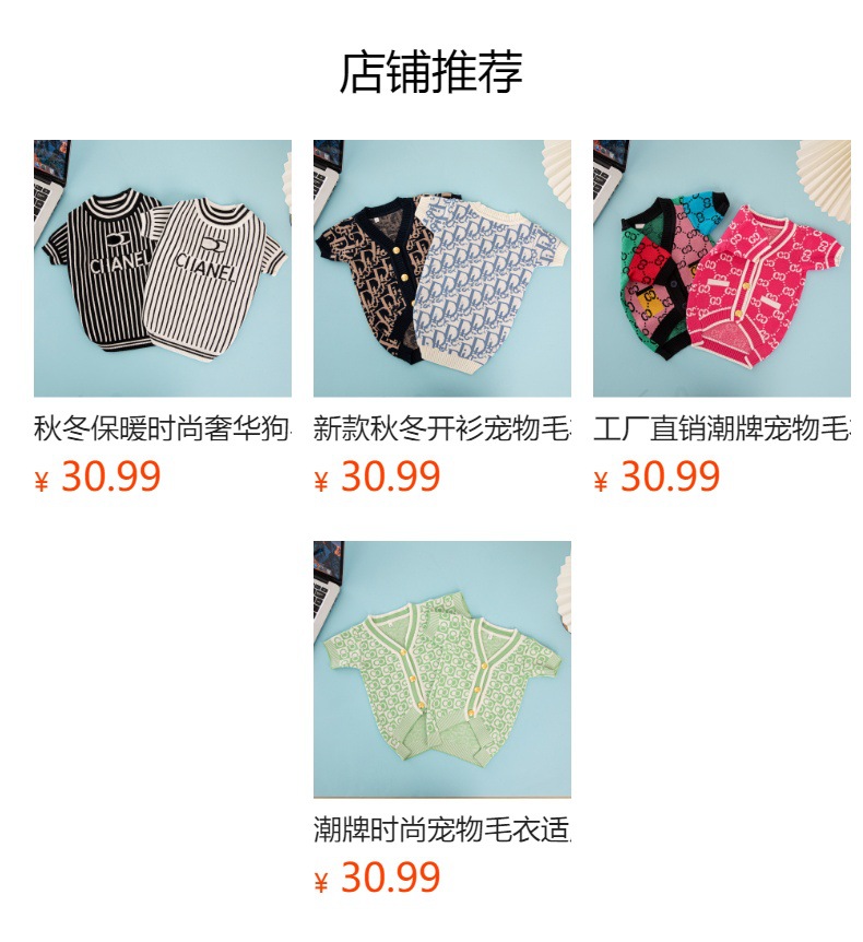 새로운 패션 브랜드 풀오버 애완 동물 스웨터 가을과 겨울 따뜻한 높은 탄성 개 옷 편안한 패션 애완 동물 코트스토어 가기