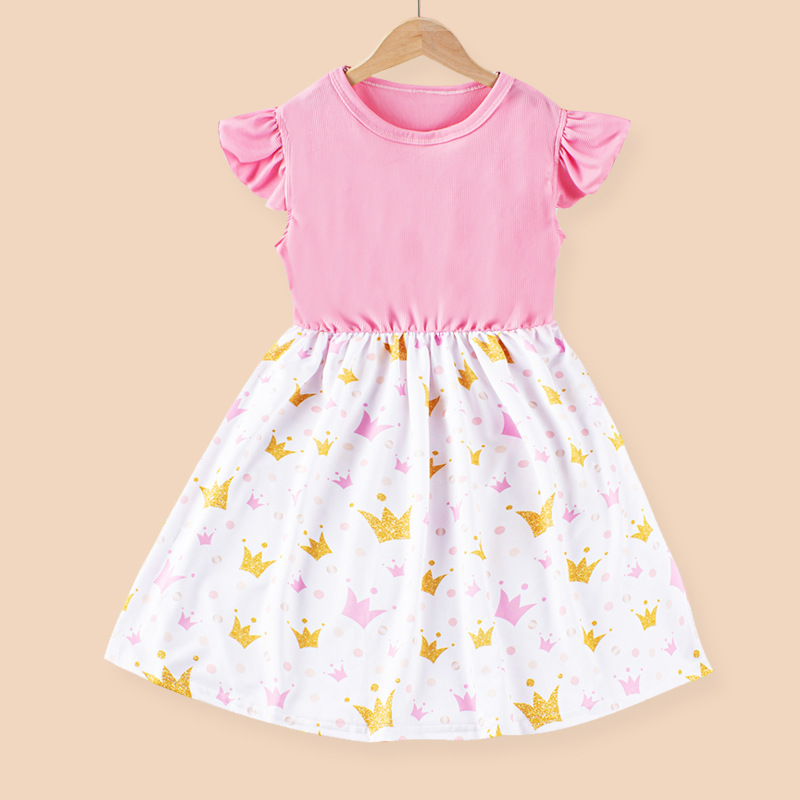 여름 소녀 달콤한 원피스 외국 스타일 작은 비행 소매 패션 인쇄 원피스 국경 새로운 세대의 머리카락