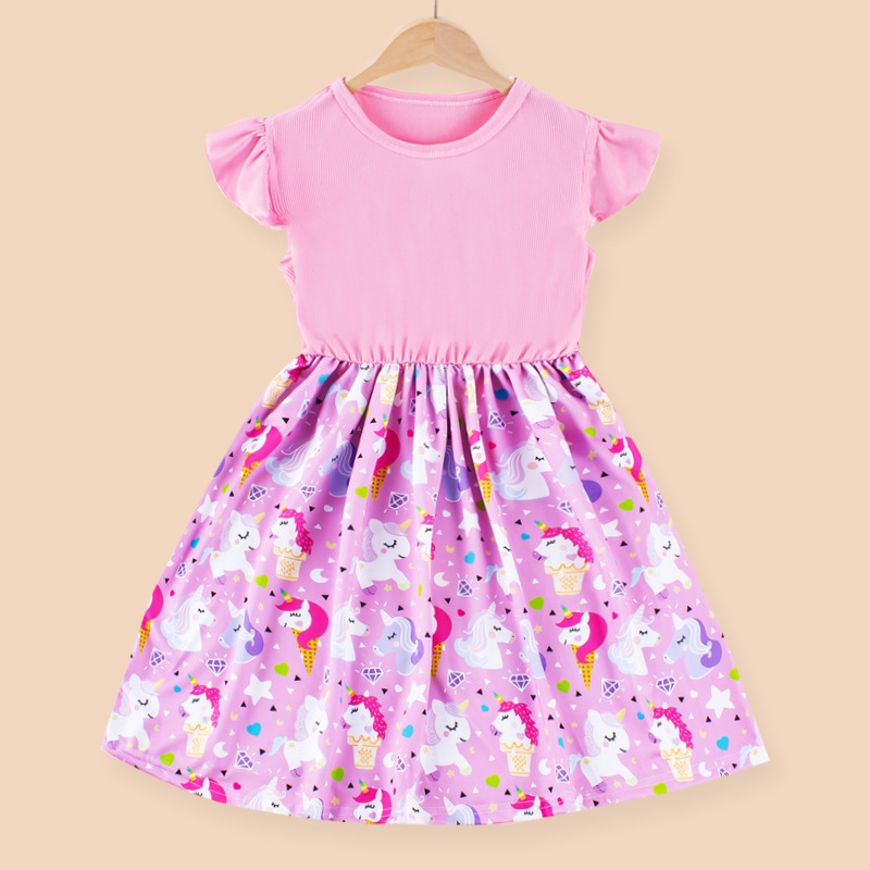 • 컬러풀한 유니콘 플라잉 슬리브 엘라스틱 스커트