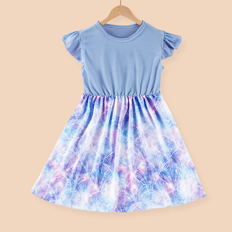 • 바다색 판타지 조개 플라잉 슬리브 엘라스틱 스커트