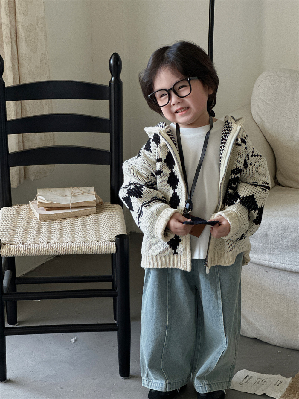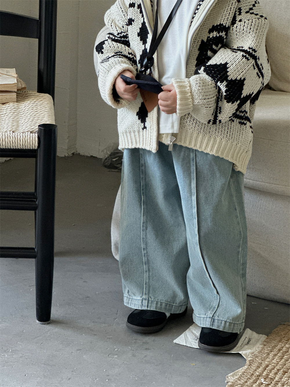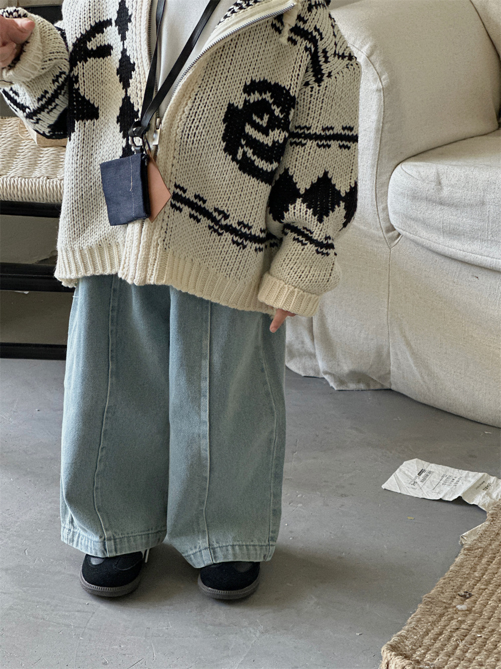 Zhili 아동복 소년 스트레이트 청바지 24 새로운 한국 스타일 중소형 어린이 와이드 다리 바지 남녀 보물 스티칭 바지스토어 가기
