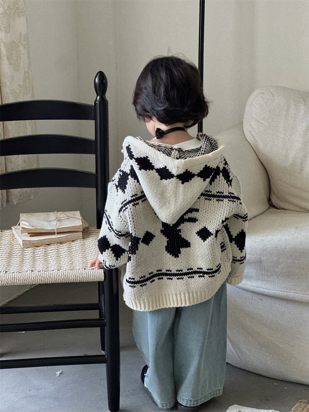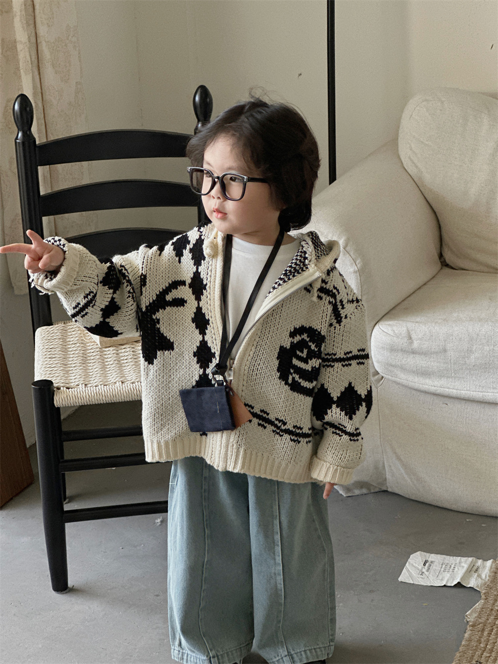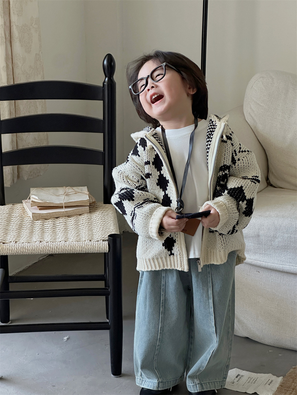 Zhili 아동복 소년 스트레이트 청바지 24 새로운 한국 스타일 중소형 어린이 와이드 다리 바지 남녀 보물 스티칭 바지스토어 가기