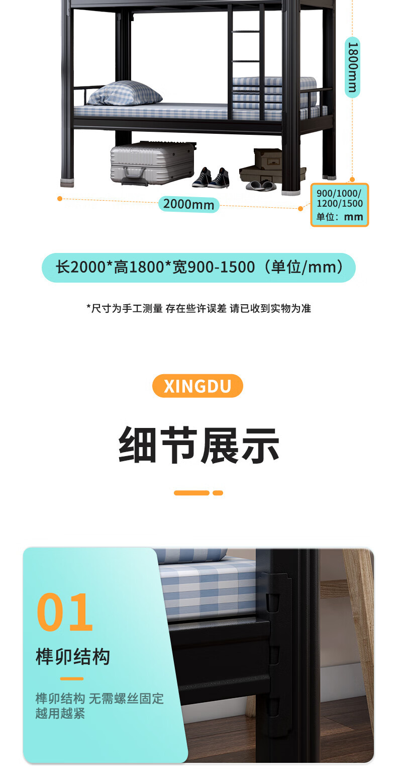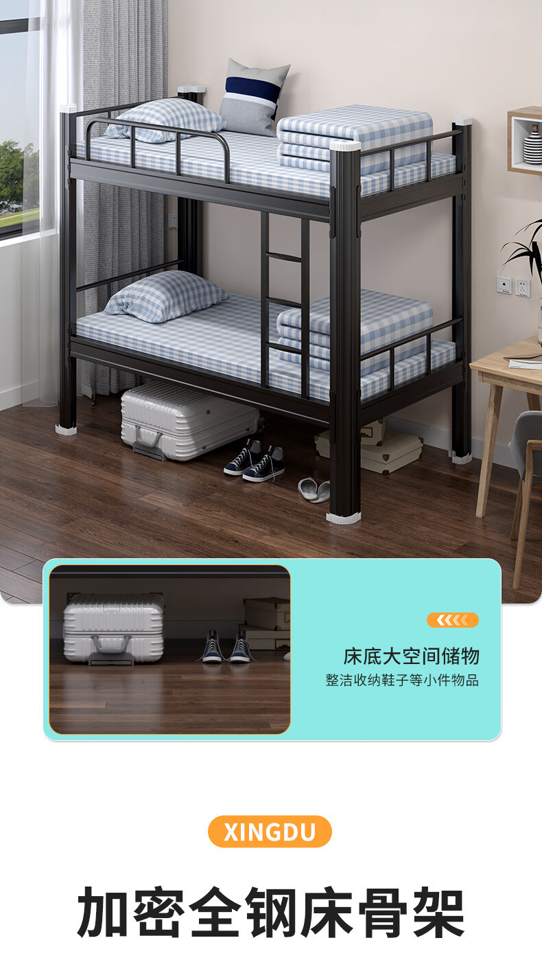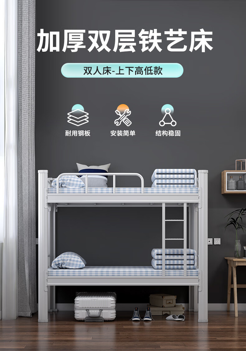 맞춤형 이층 철제 침대, 기숙사 아파트 침대, 직원용 높낮이 조절 철제 침대, 철제 프레임 침대, 학생용 두꺼운 철제 침대스토어 가기