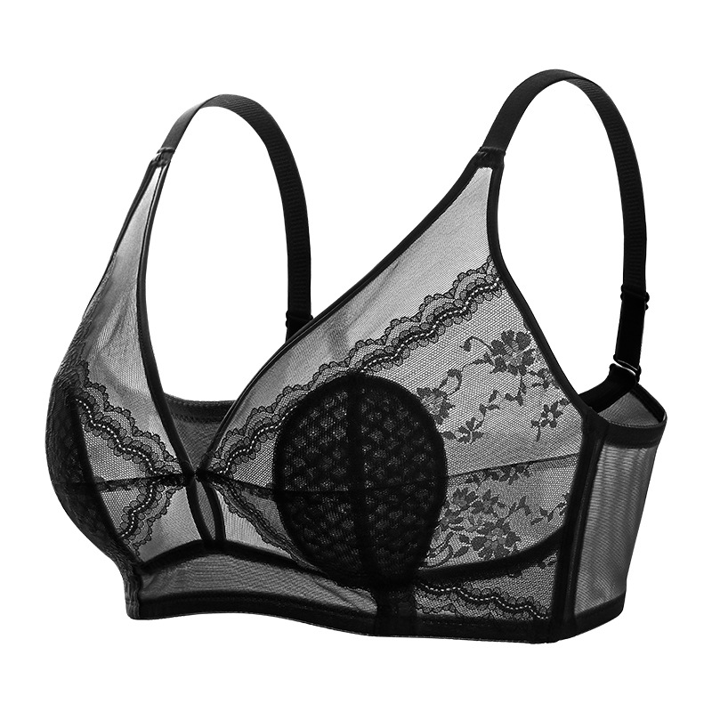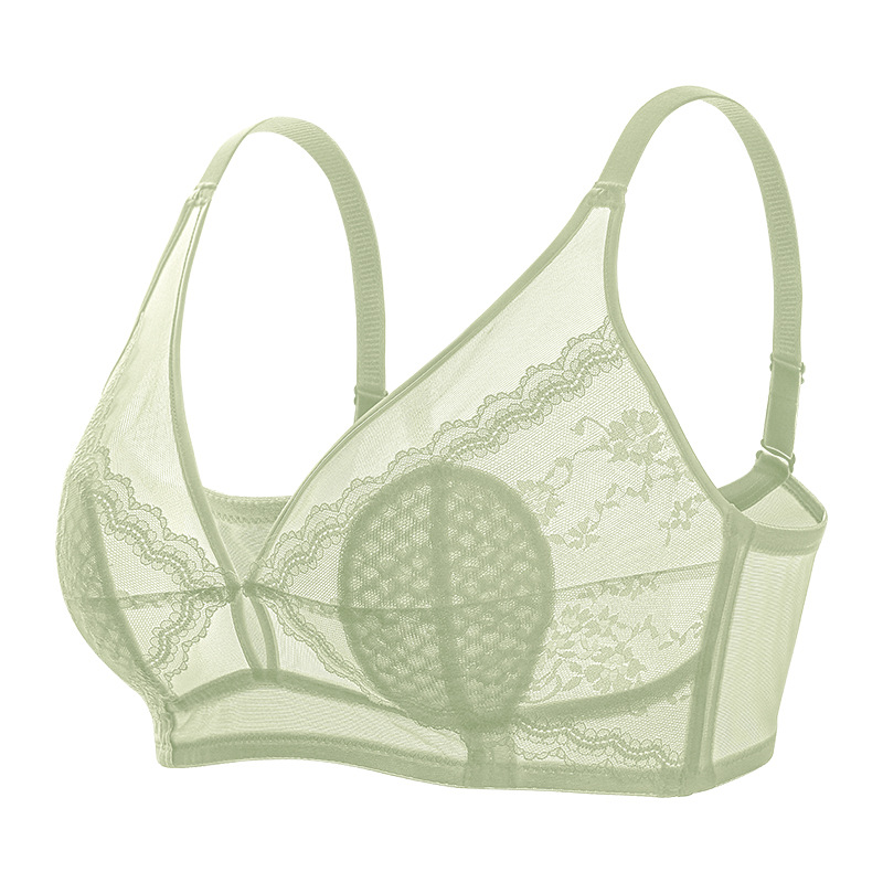 대형 가슴 작은 모임 안티 범프 속옷 경량 싱글 레이어 여성용 브라 섹시 레이스 비 테두리 파라 유방 브래지어