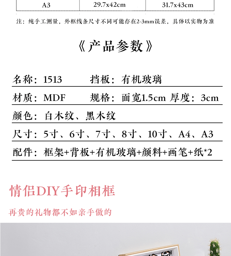 타나바타 축제 커플 손자국 사진 프레임 도매 남성 여자 친구 발렌타인 데이 선물 수제 DIY 팜 프린트 액자 테이블스토어 가기