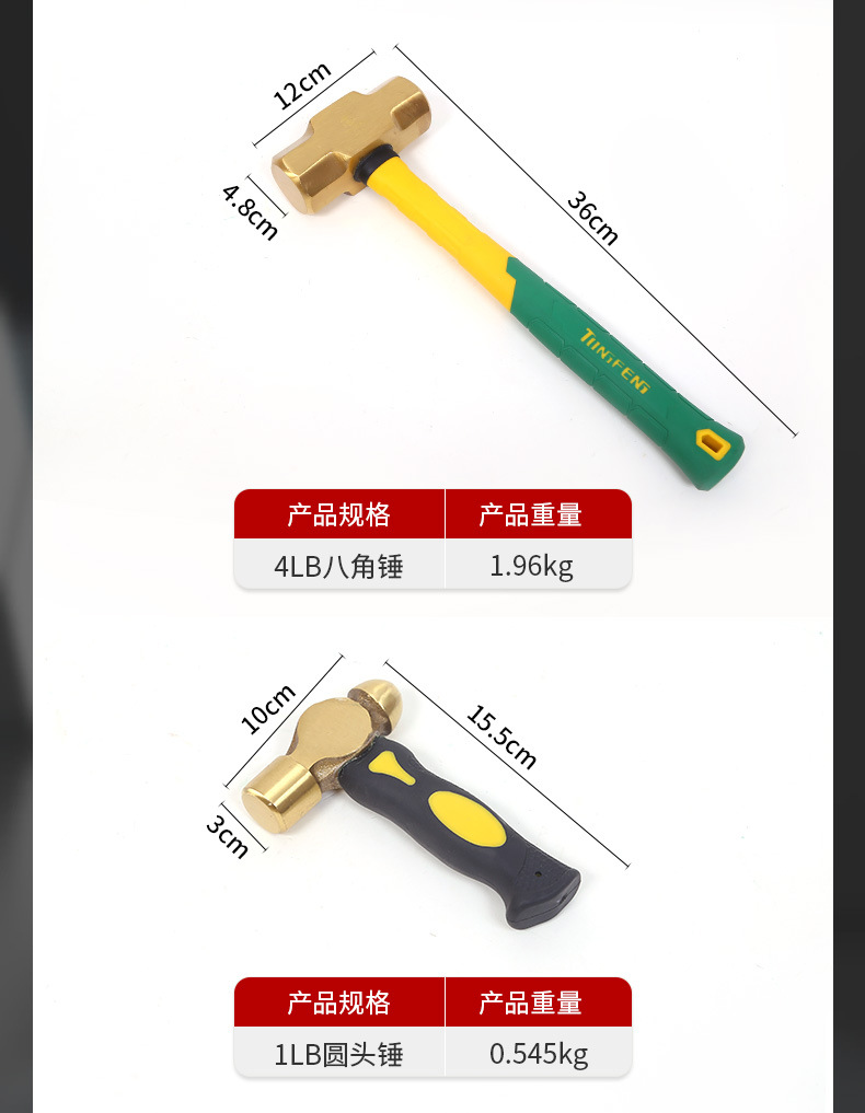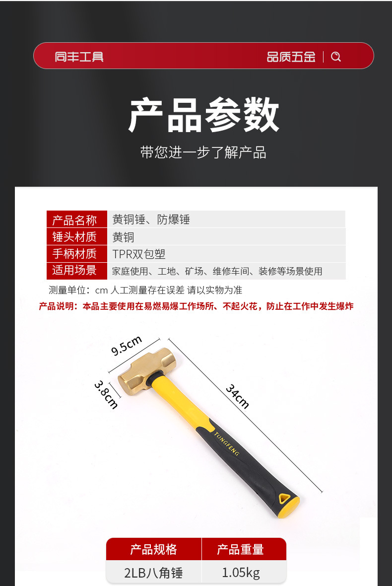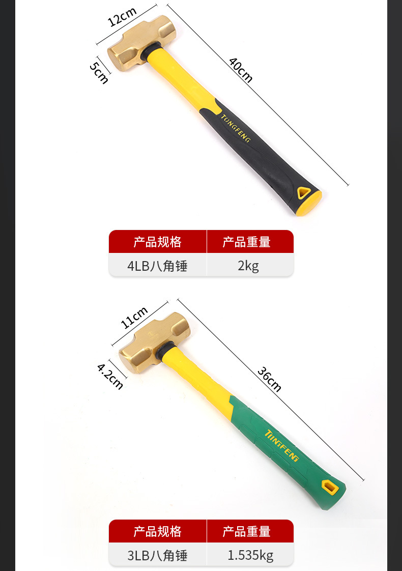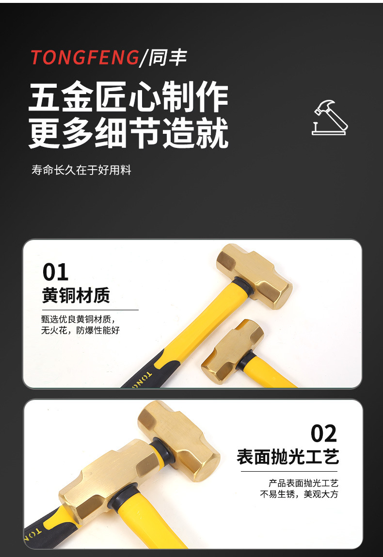 공장 도매 황동 망치 팔각형 망치 둥근 머리 방폭 대형 망치 무화염 방폭 공구 망치스토어 가기