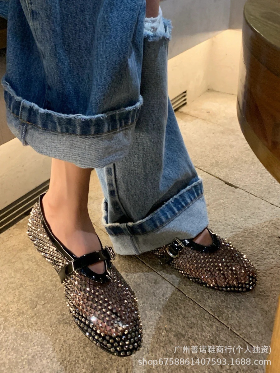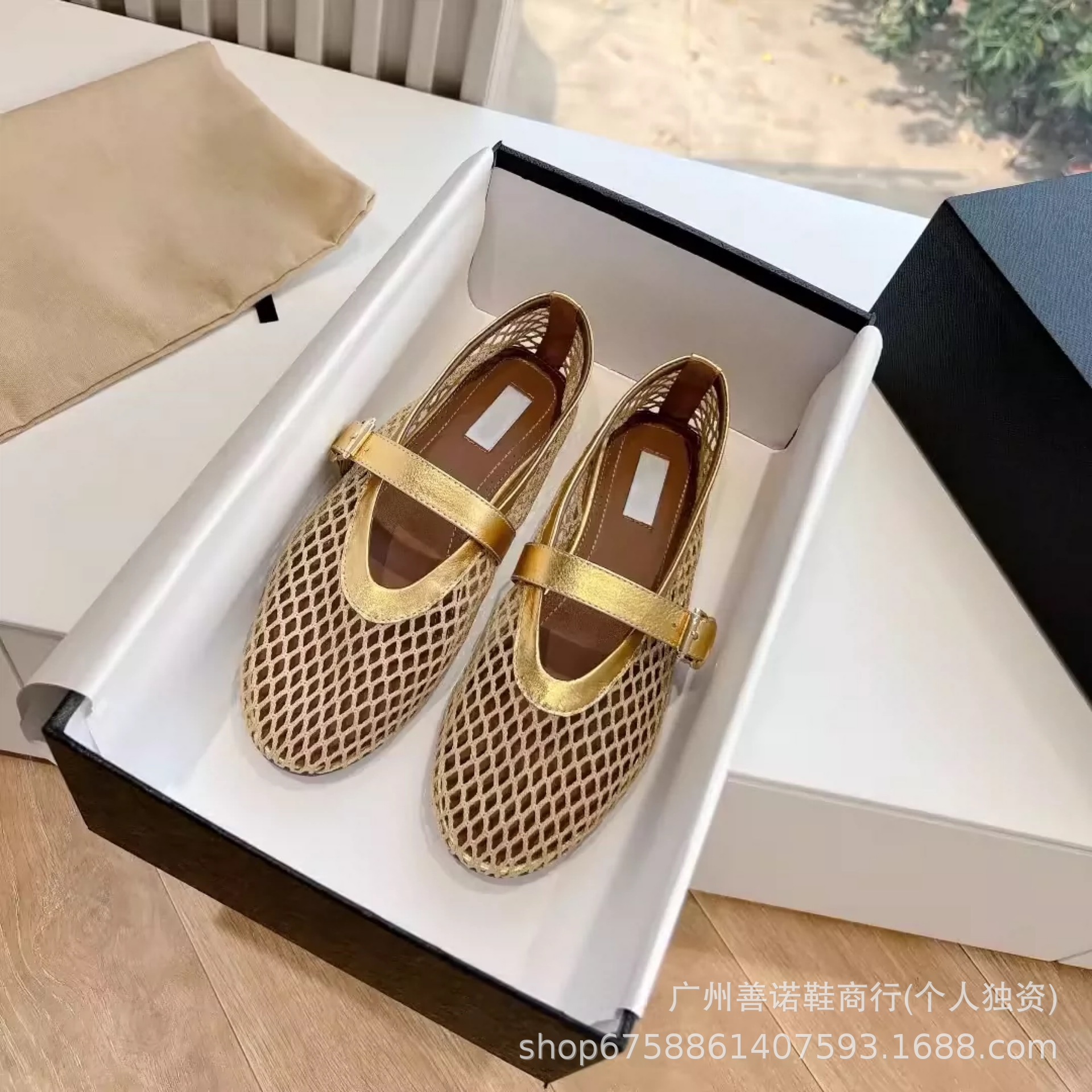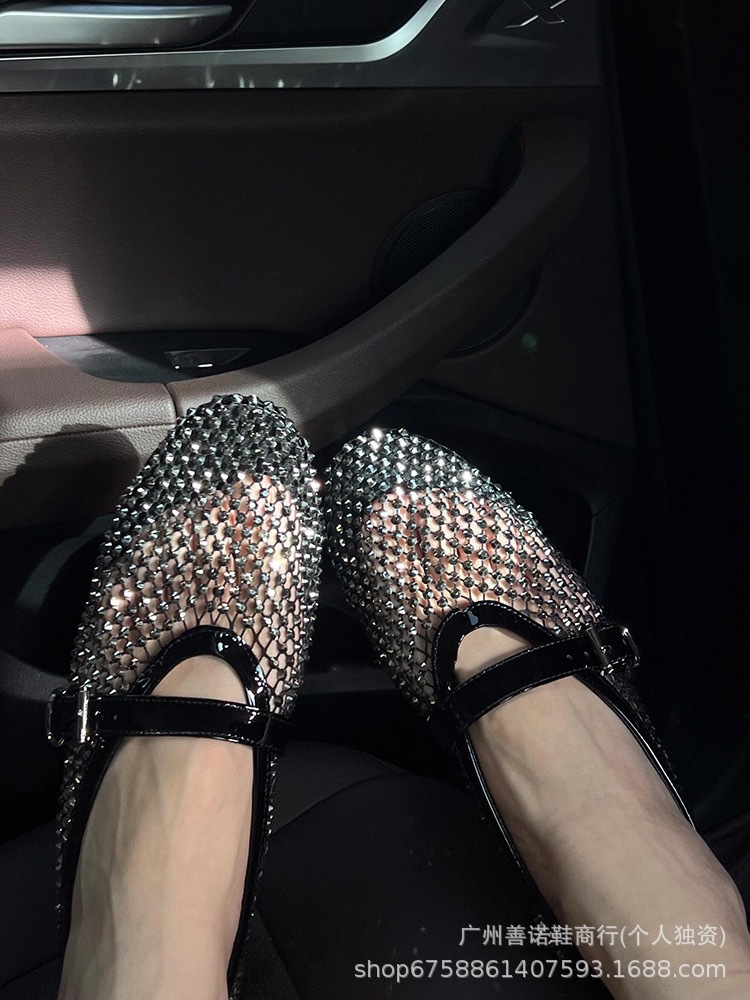 하이 에디션 AIaF 뉴 할로우 풀 라인스톤 낚시 그물 발레 신발 여성 플랫 메쉬 벨트 버클 메리 제인 신발스토어 가기