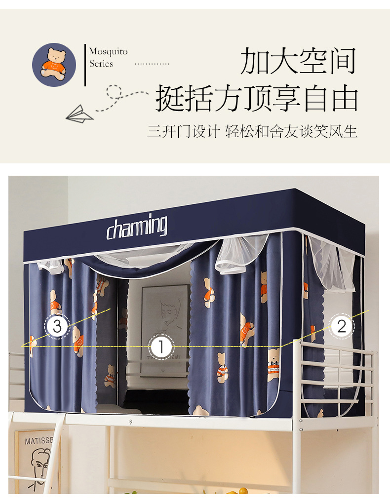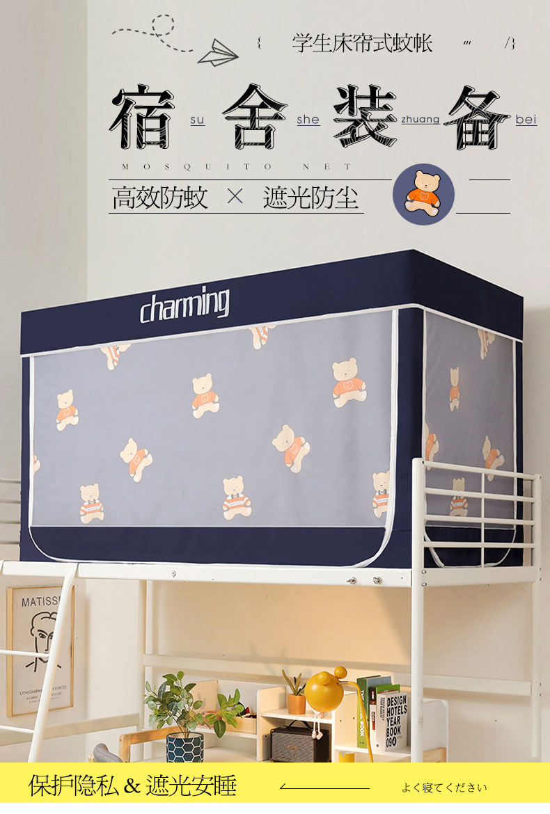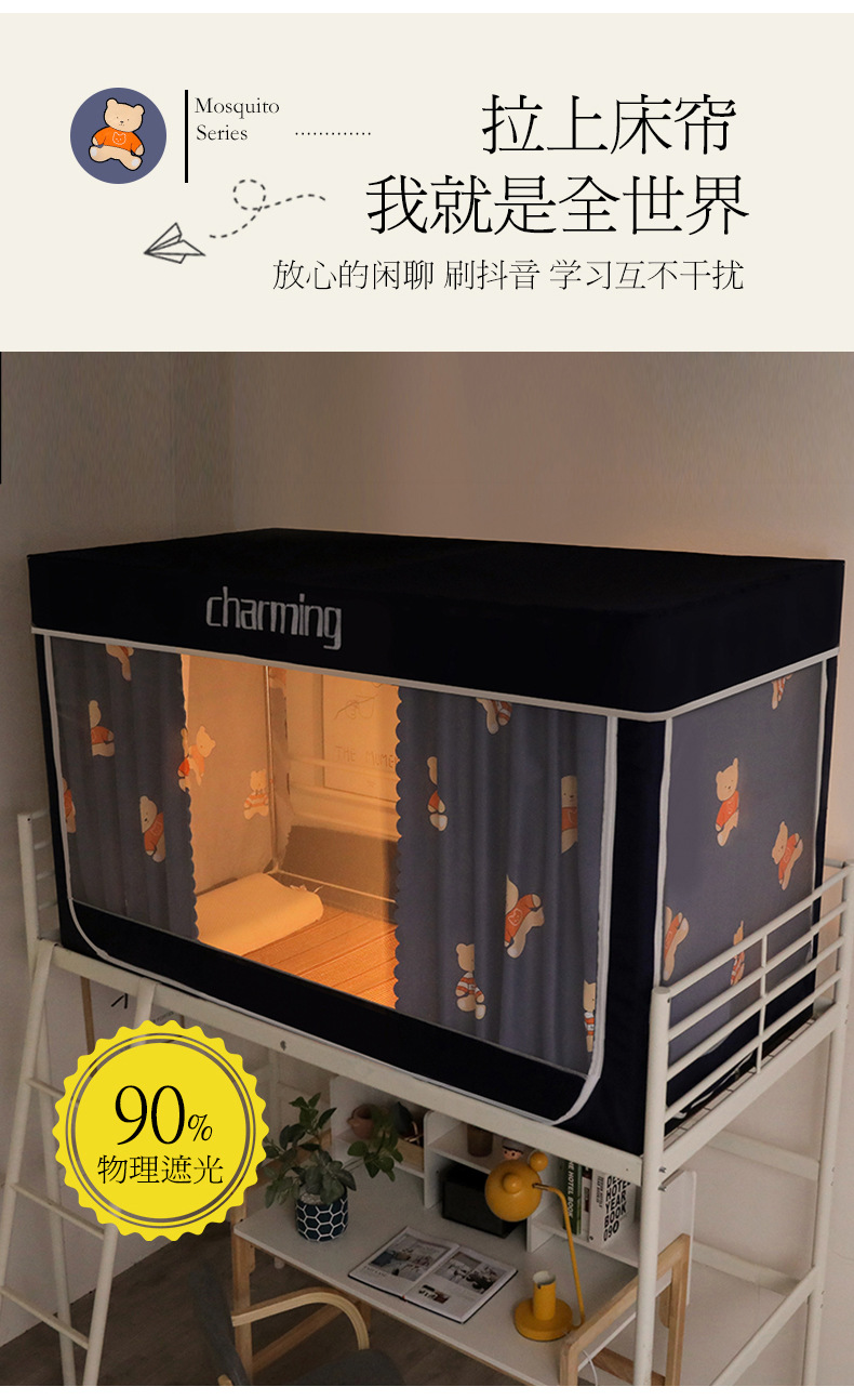 도매 학생 기숙사 침대 커튼 모기장, 강한 빛을 차단하는 지퍼가 달린 기숙사 이층 침대 커튼, 기숙사 침대 커튼 모기장스토어 가기