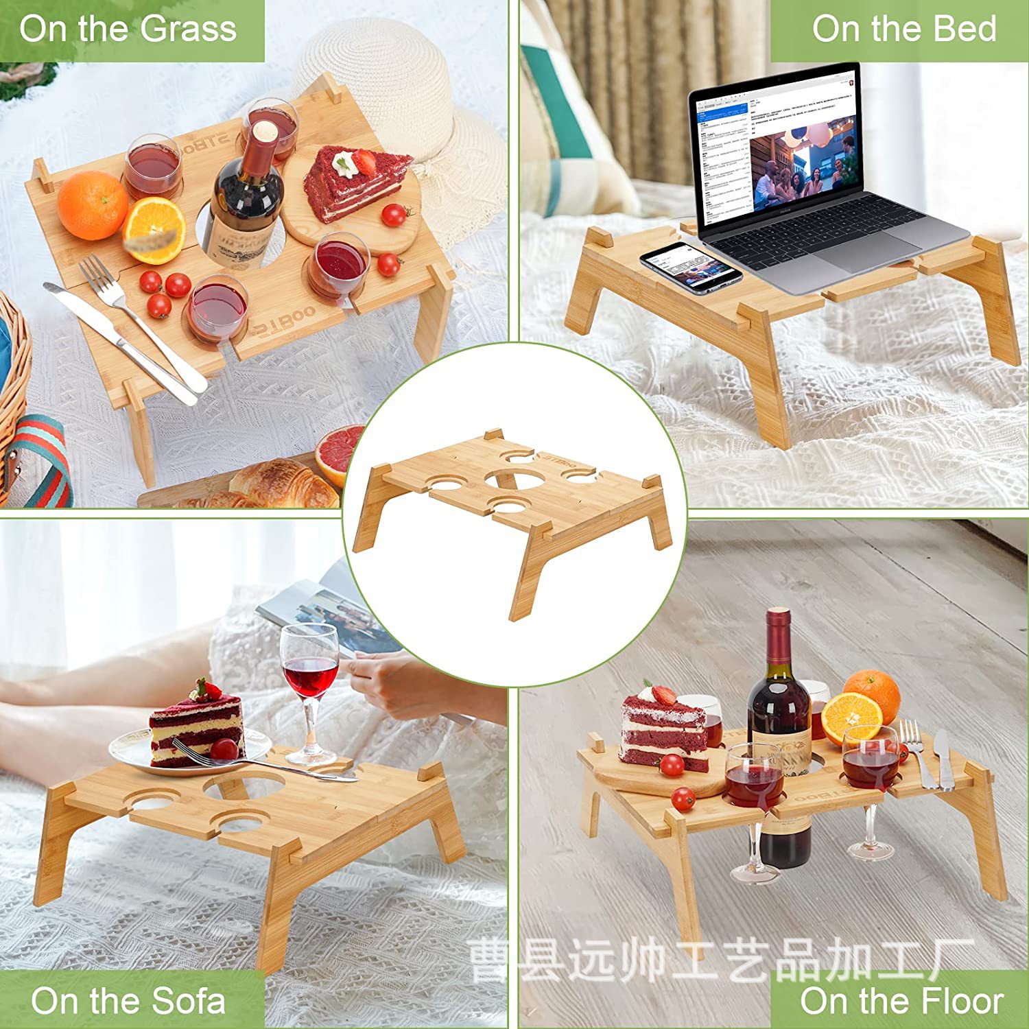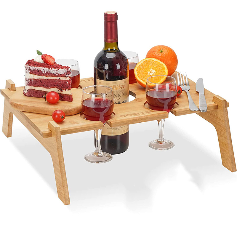 나무 야외 캠핑 피크닉 테이블 휴대용 레드 와인 컵 테이블 접이식 비치 바베큐 테이블 야외 피크닉 트레이스토어 가기