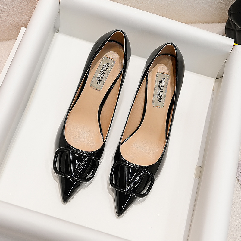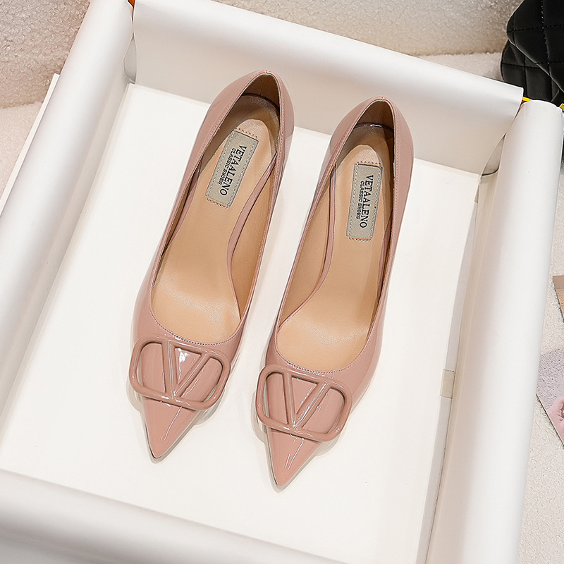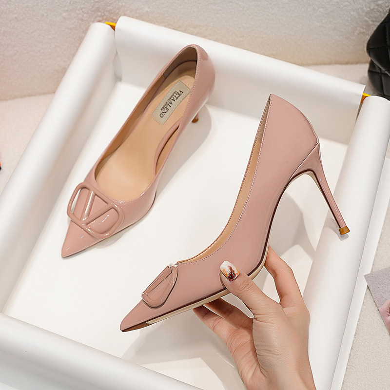 V자형 뾰족코 구두 2025 봄 신상 여성용 우아한 스타일 명사님과 같은 스타일의 얇은 굽 월렌 하이힐스토어 가기
