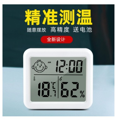 대형 스크린 온도계 웃는 얼굴 디스플레이 메모리 기능 초박형 실내 에어컨 습도계 고온 및 저온 습도스토어 가기
