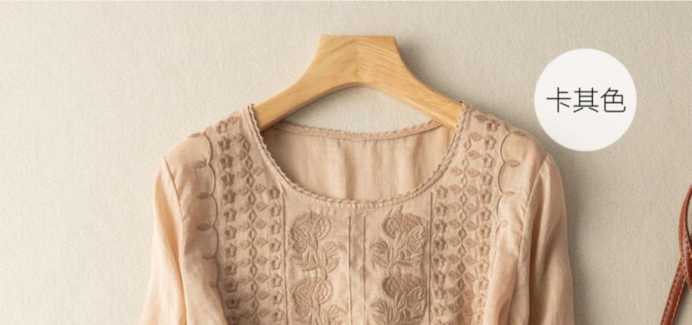 Amazon Shopee 동남 아시아 얇은 고귀한 자수 탑 여성 예술적 복고풍 통기성 면 및 린넨 반팔 티셔츠스토어 가기