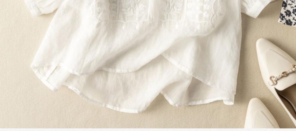 Amazon Shopee 동남 아시아 얇은 고귀한 자수 탑 여성 예술적 복고풍 통기성 면 및 린넨 반팔 티셔츠