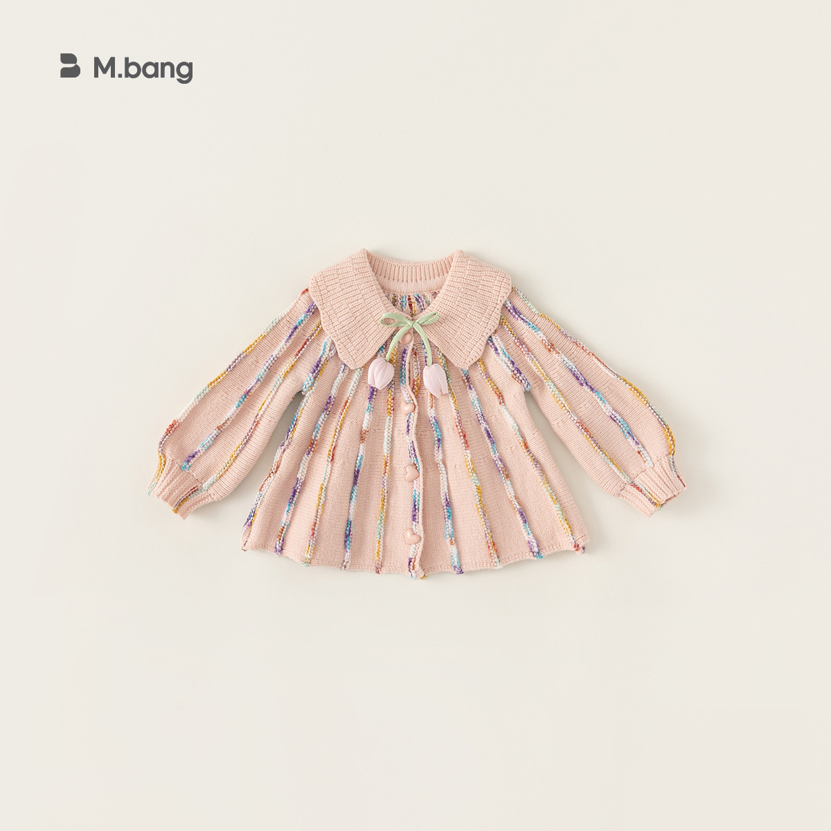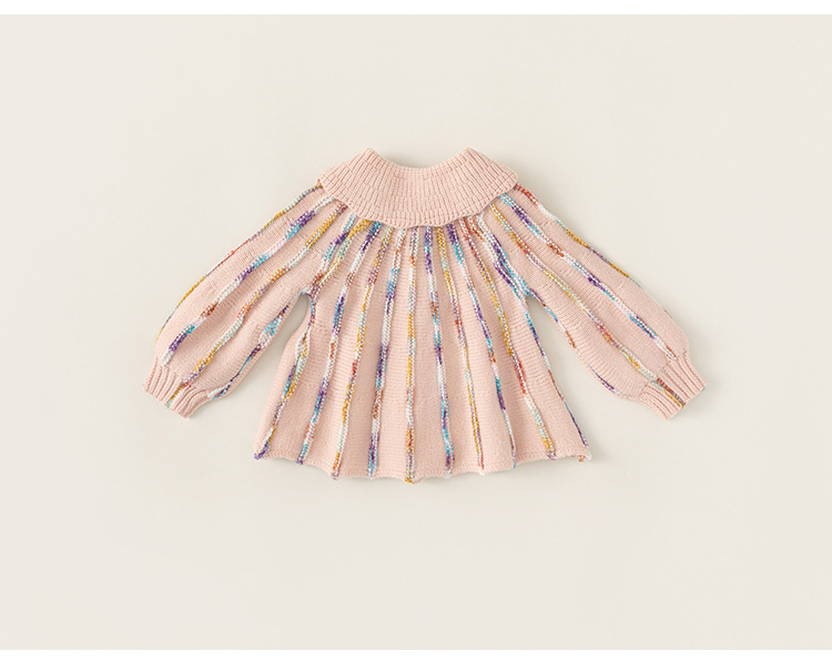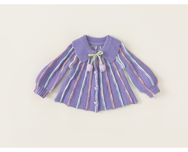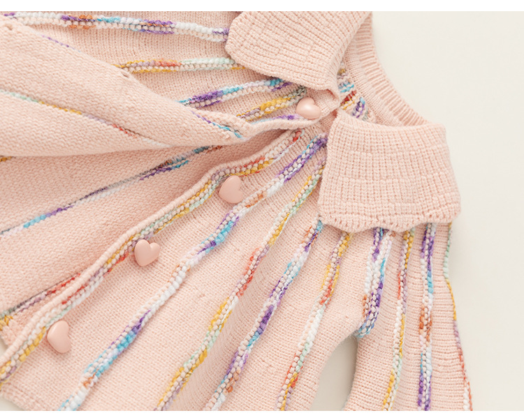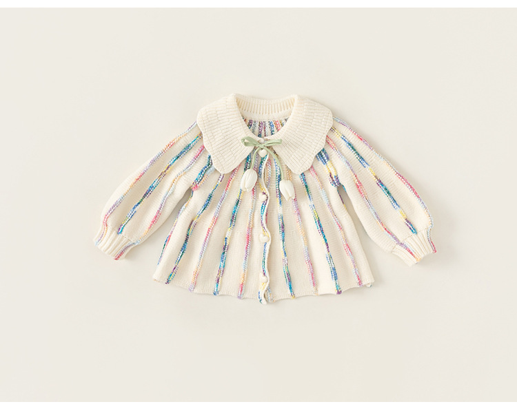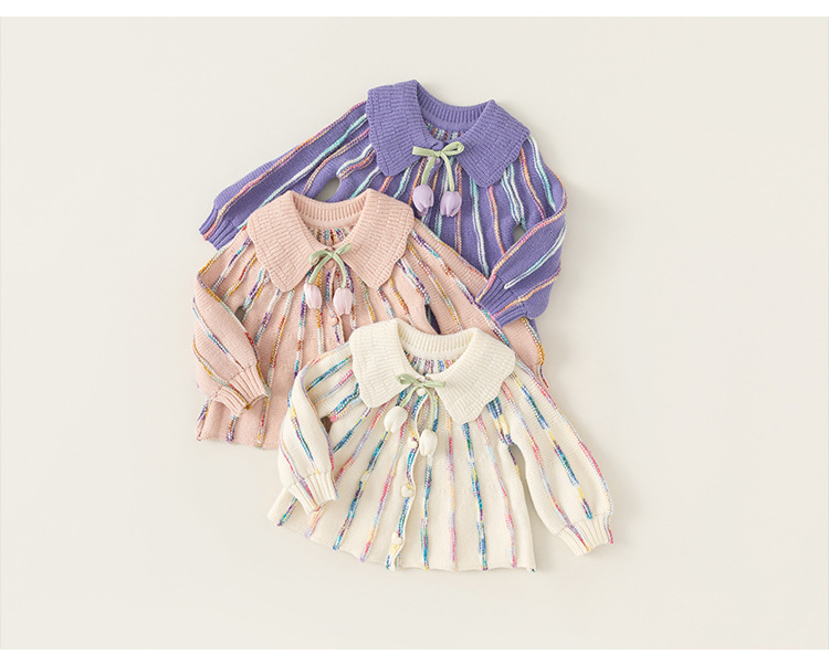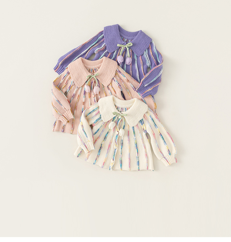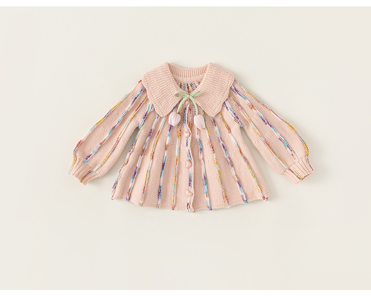 방선택 아동복 2026 봄 가을 아동 니트 자켓 라펠 여아 컬러풀 스트라이프 탑 아기 스웨터 가디건
