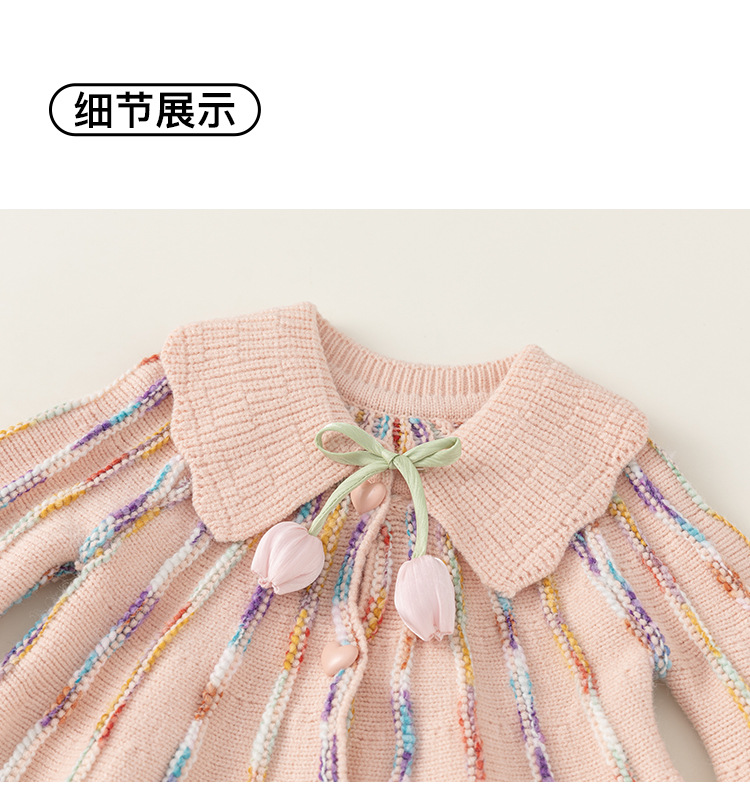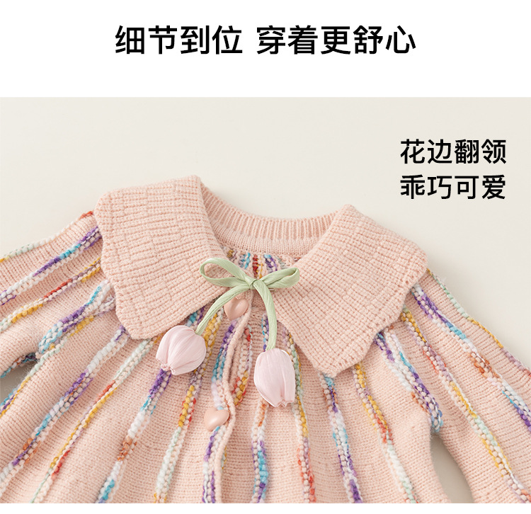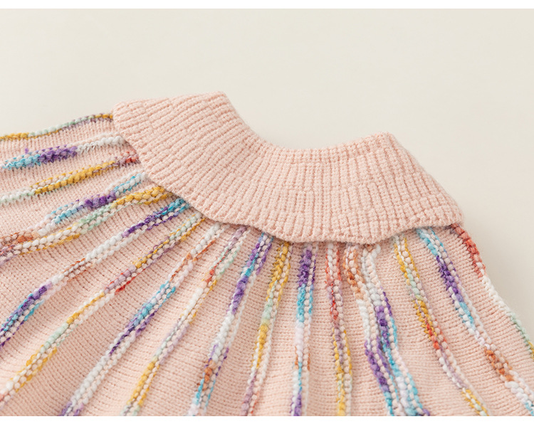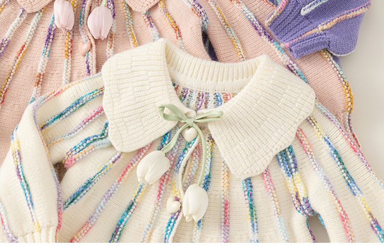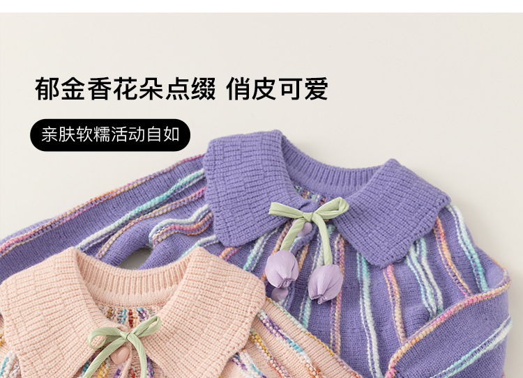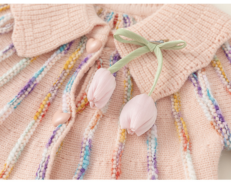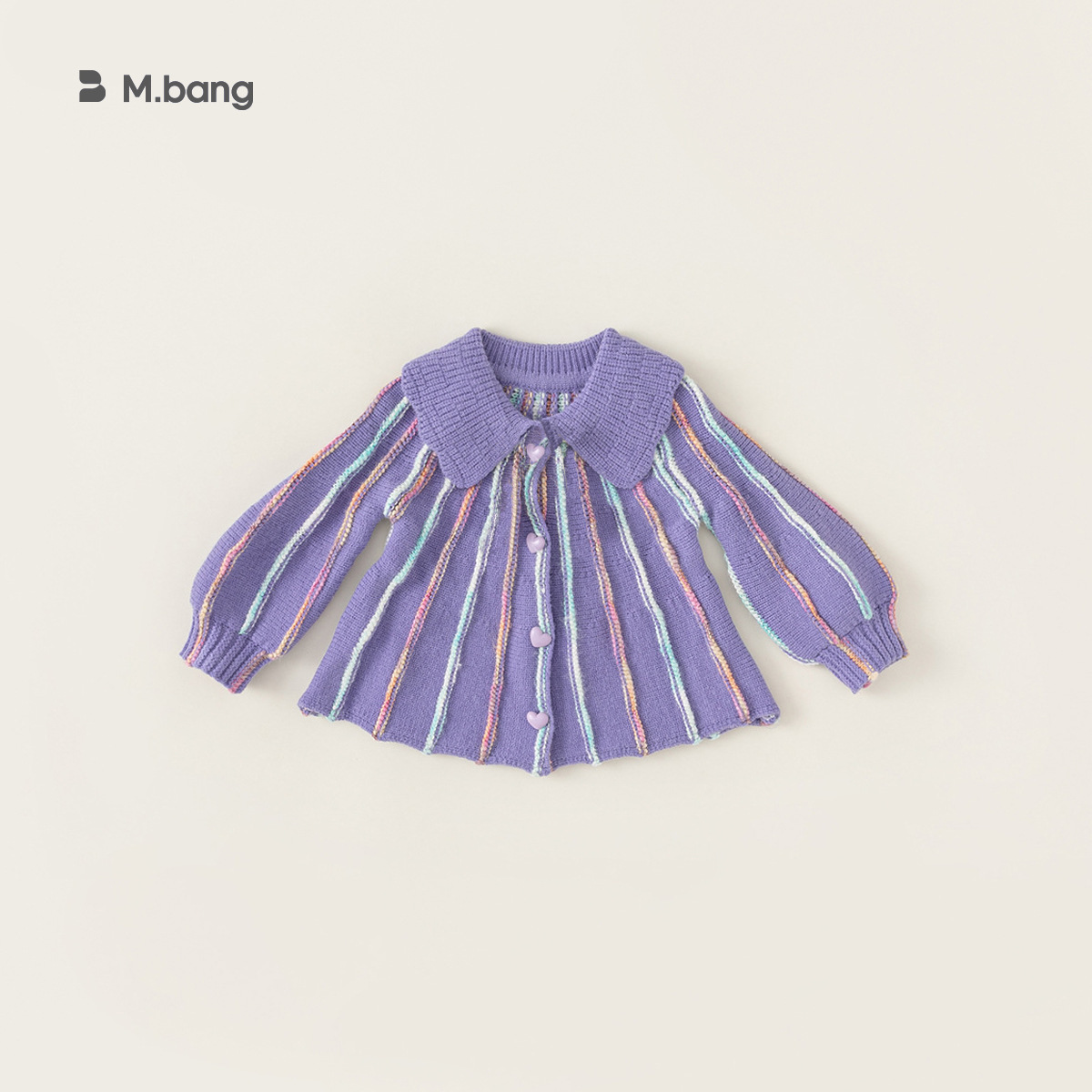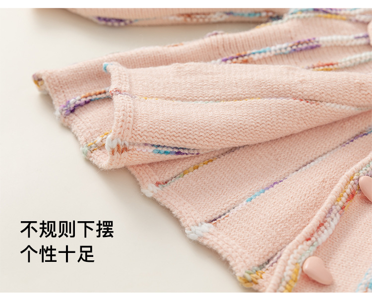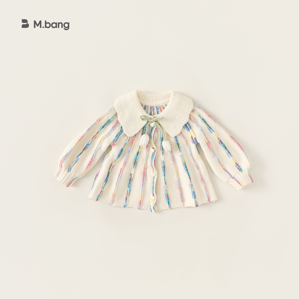 방선택 아동복 2026 봄 가을 아동 니트 자켓 라펠 여아 컬러풀 스트라이프 탑 아기 스웨터 가디건